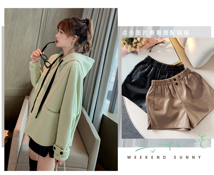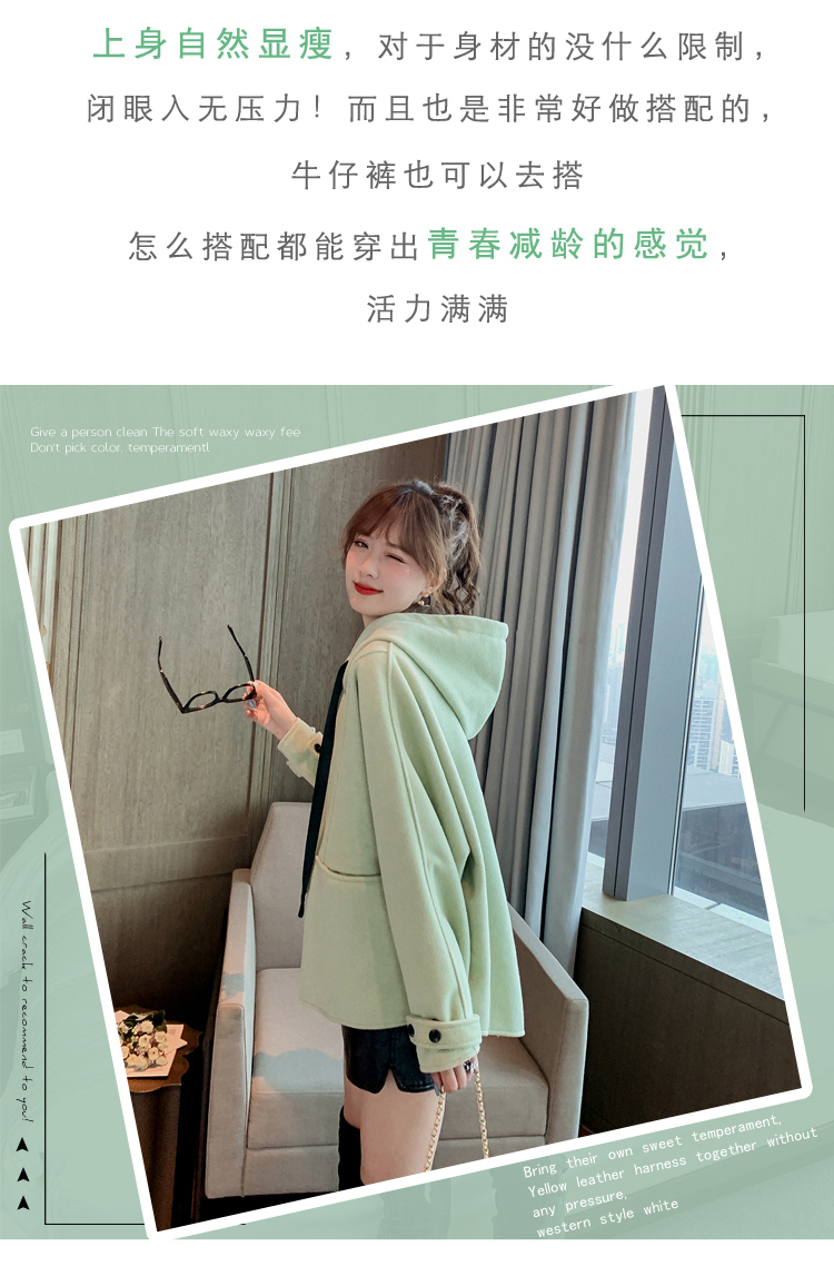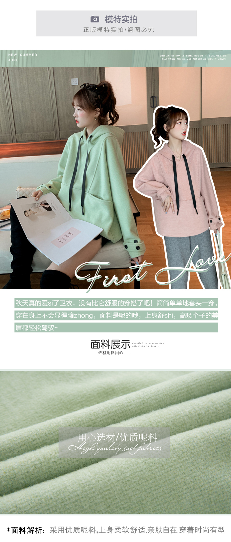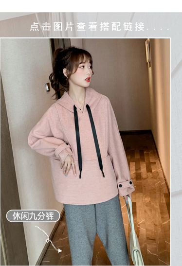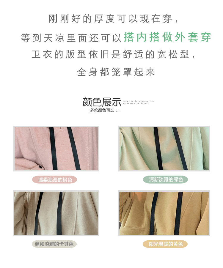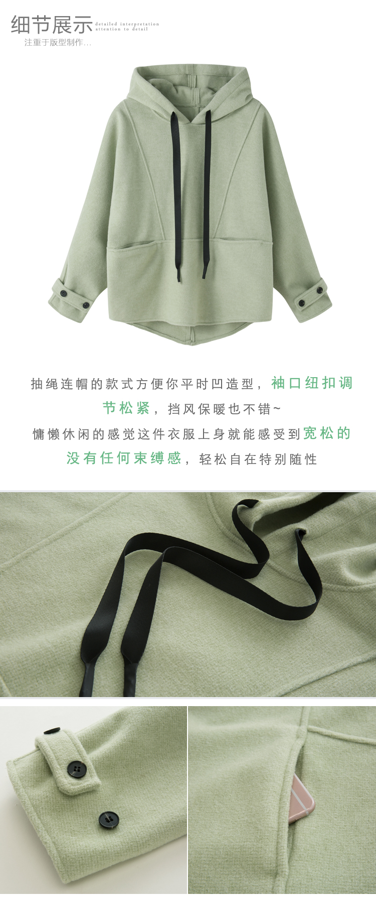 2019秋裝韓版寬松連帽套頭衛衣女百搭慵懶休閑毛呢外套上衣潮1入