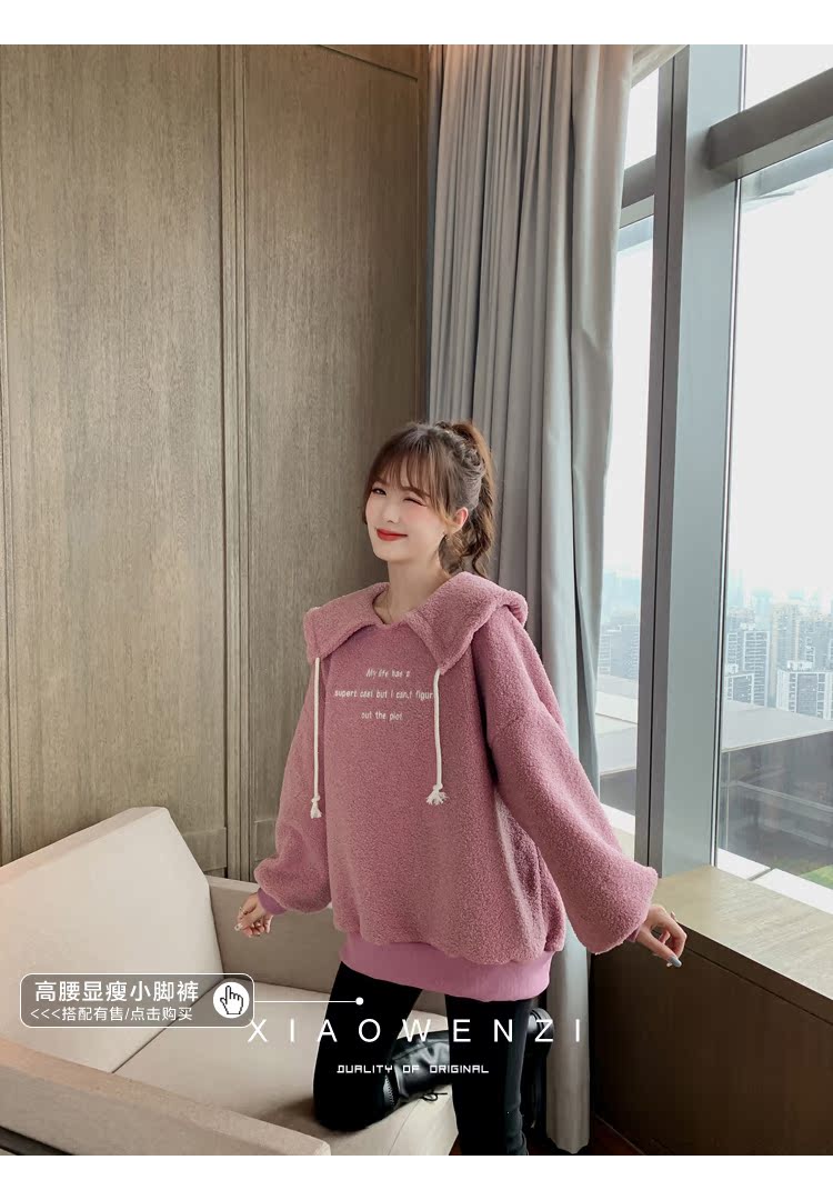 2019慵懶休閑羊羔毛加厚加絨衛衣女韓版寬松長袖外套上衣1入