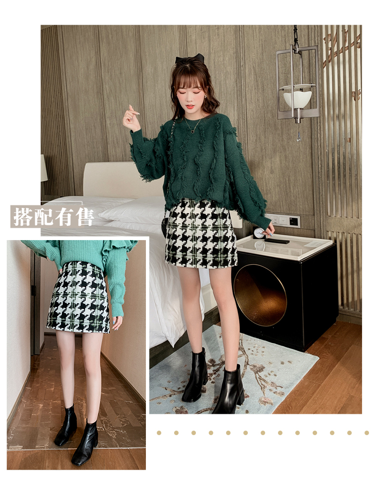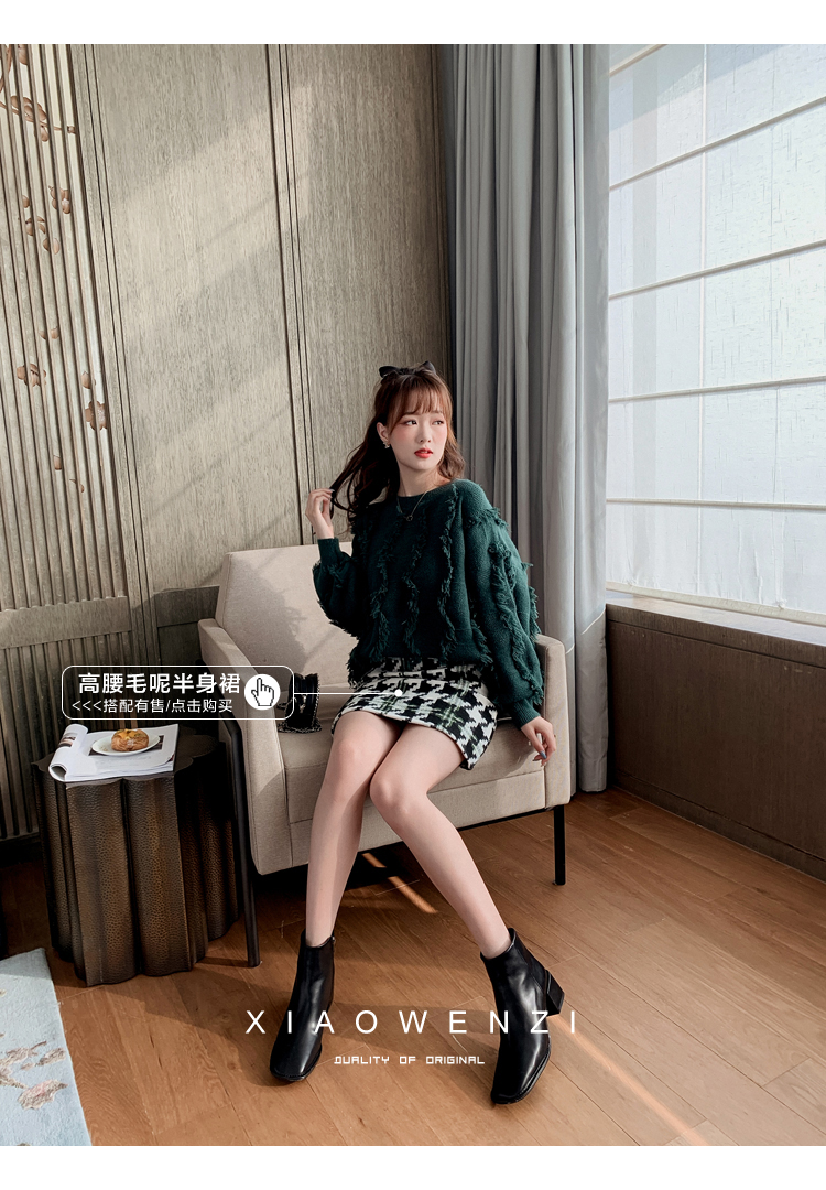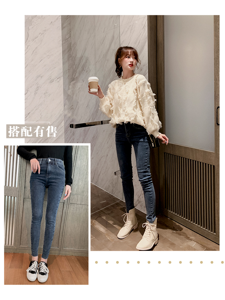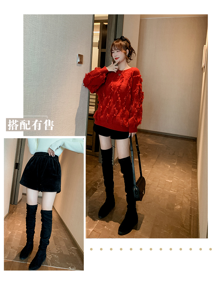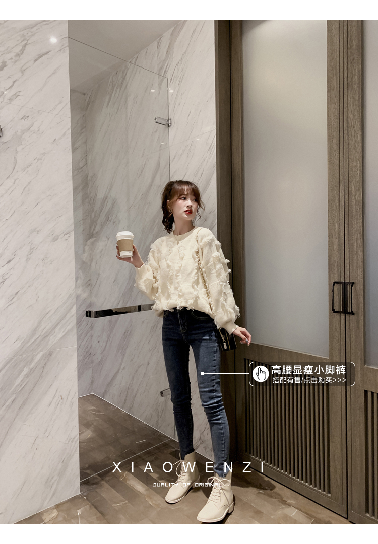 2019女韓版寬松慵懶風復古流蘇毛衣女時尚套頭燈籠袖上衣1入