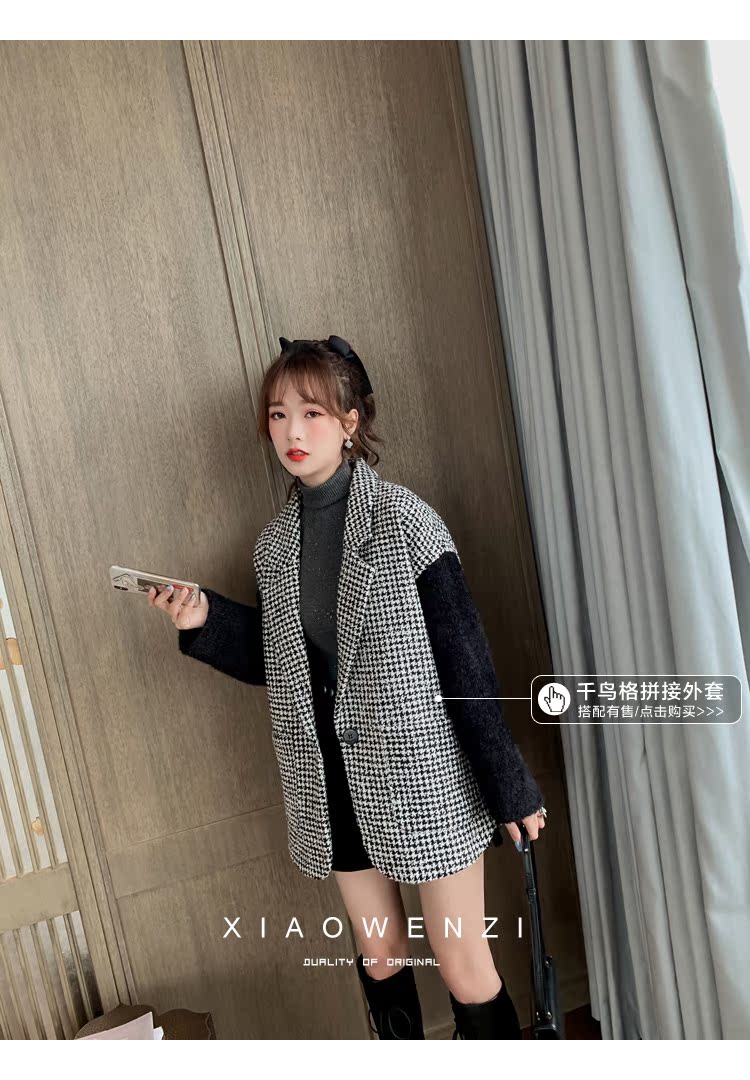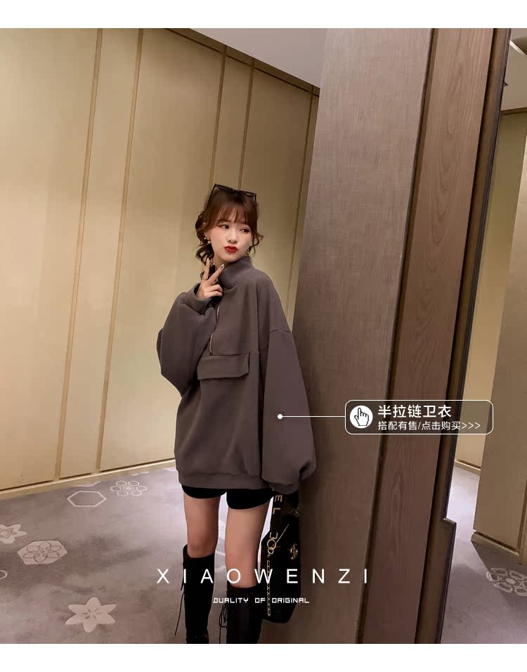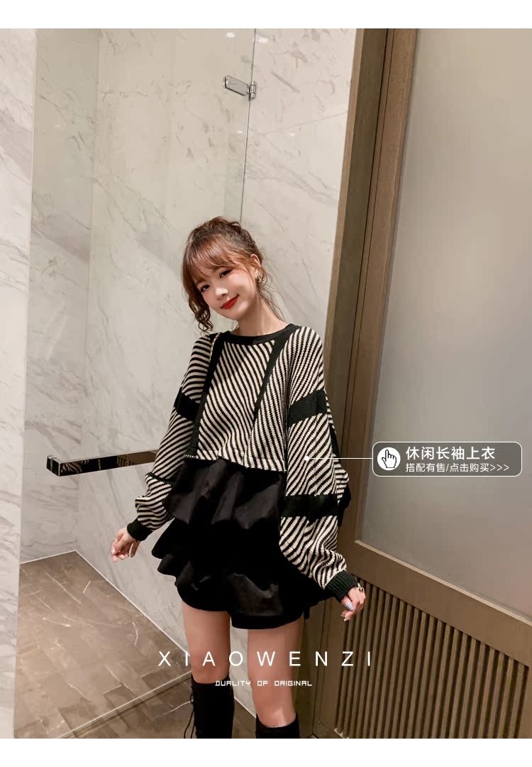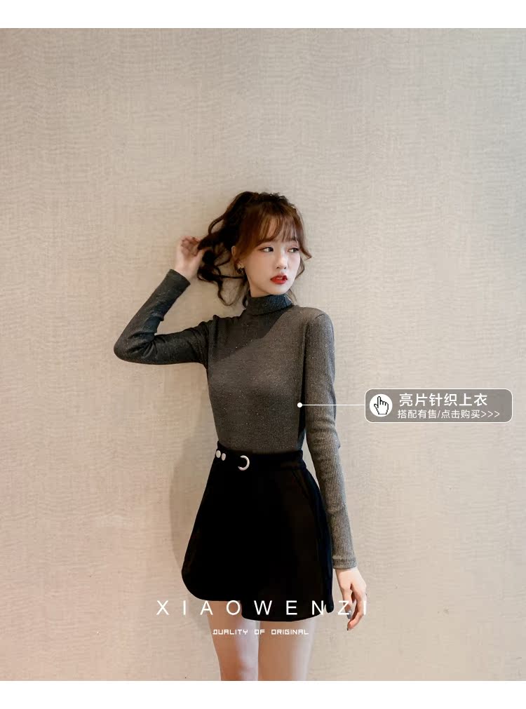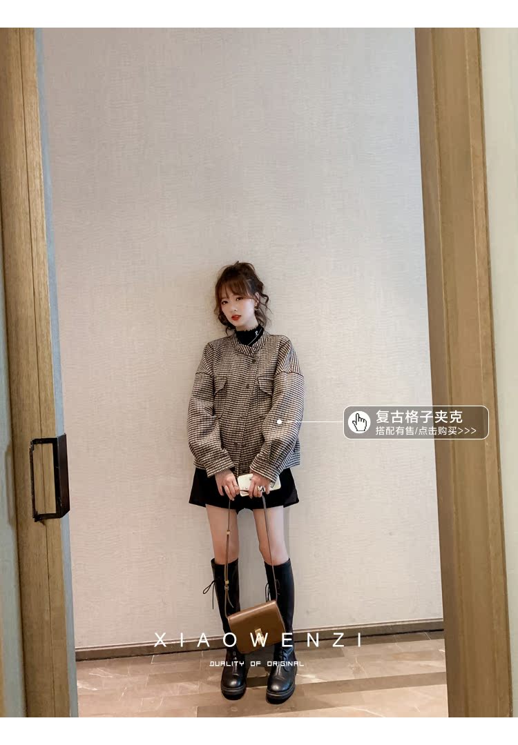褲子女2019秋裝韓版寬松高腰a字闊腿褲顯瘦百搭毛呢休閑短褲1入