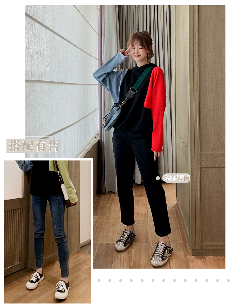 衛衣2019女連帽初秋潮ins韓版寬松慵懶風拼接cec長袖套頭上衣1入