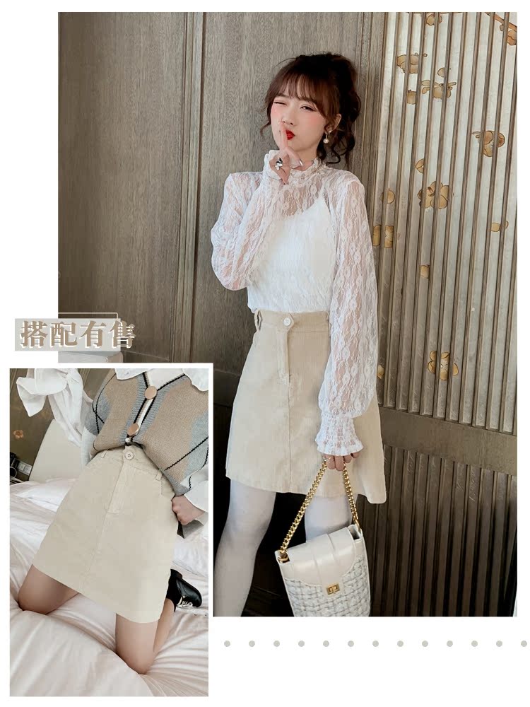 2019秋裝法式優雅蕾絲長袖上衣女時尚chic勾花鏤空網紗打底衫1入