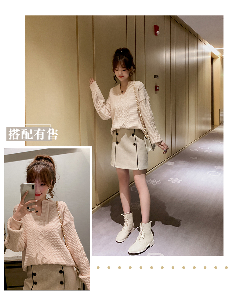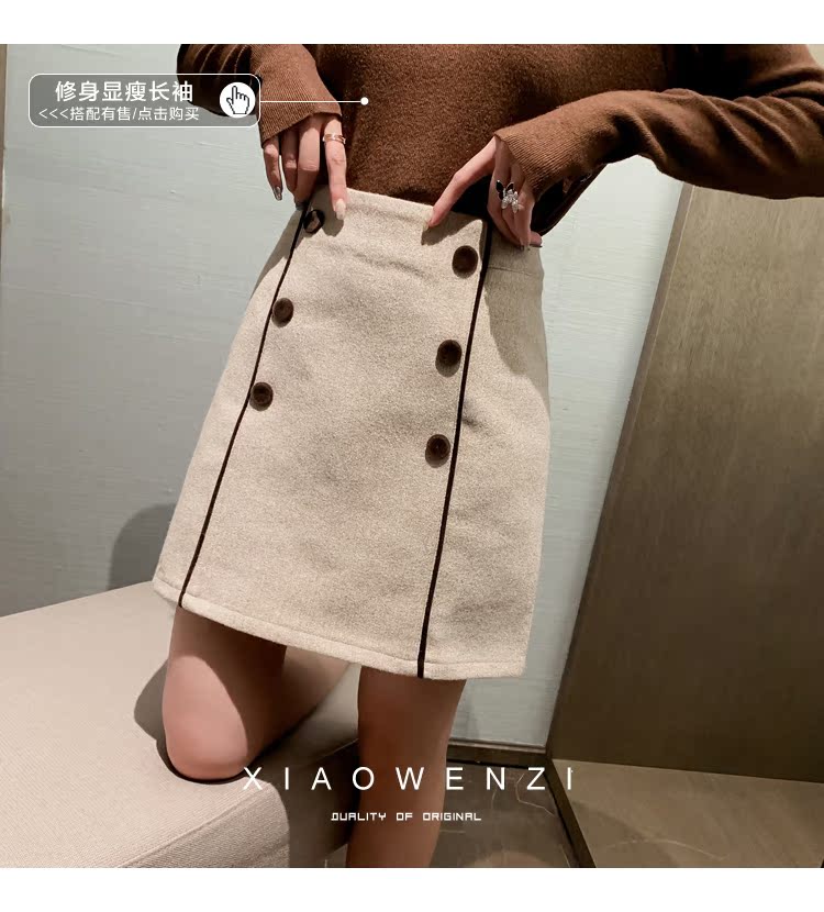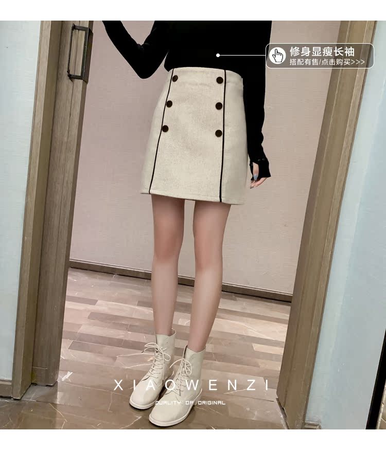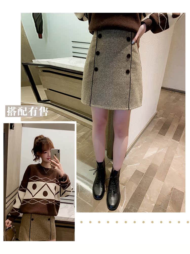 2019半身裙女時尚雙排扣顯瘦高腰a字短裙包臀毛呢裙子女1入