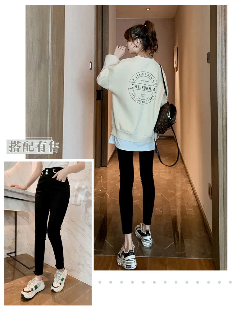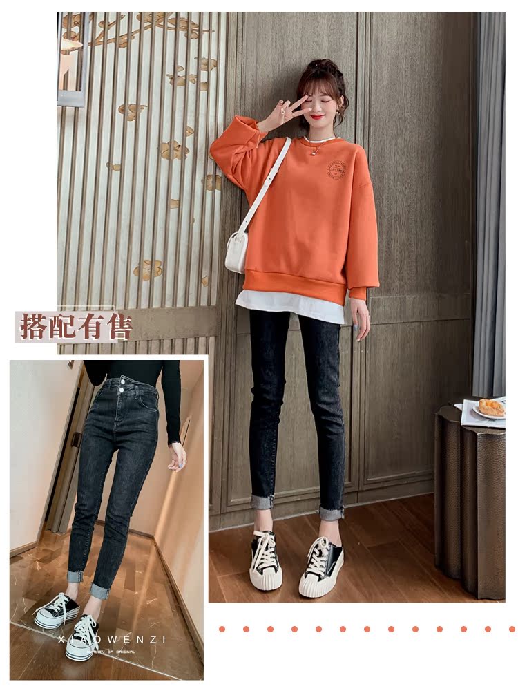 2019秋裝時尚chic假兩件拼接套頭衛衣女韓版寬松中長款上衣潮1入