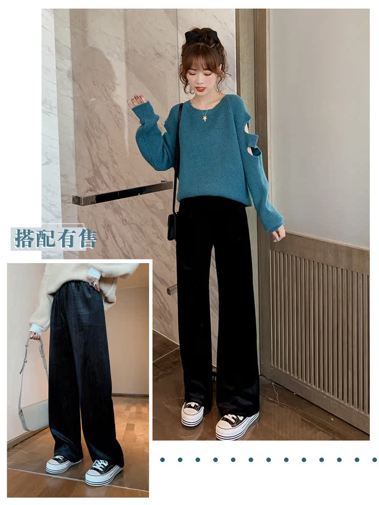 2019秋裝設計感小心機針織毛衣女時尚露肩上衣慵懶寬松衛衣潮1入