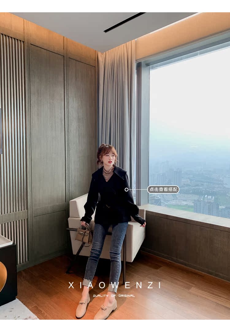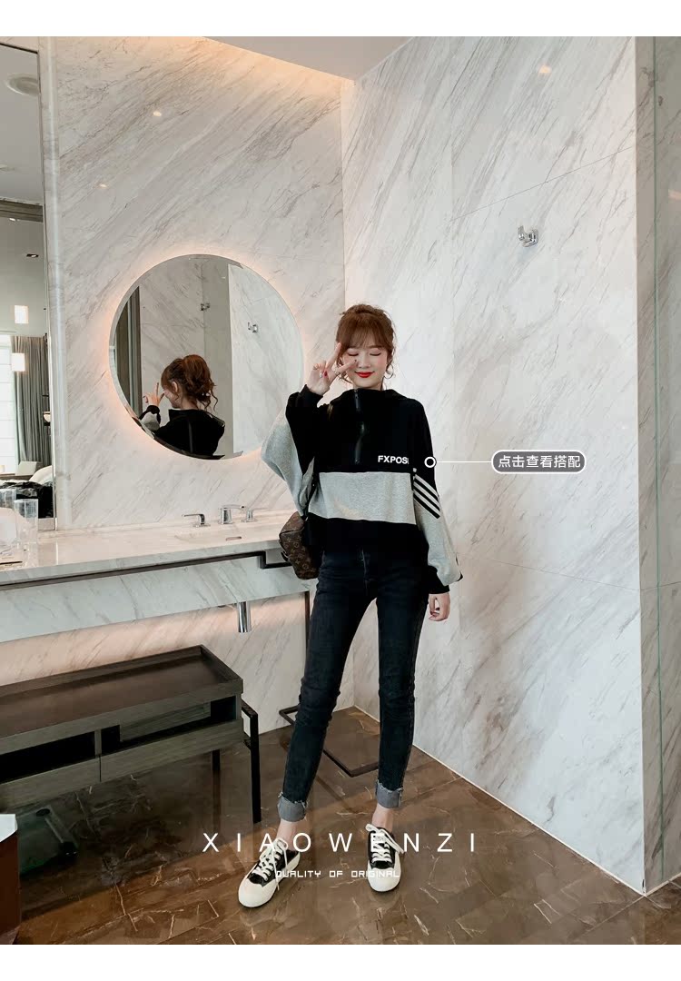 褲子女2019秋裝韓版高腰修身顯瘦牛仔褲時髦百搭鉛筆小腳褲潮1入