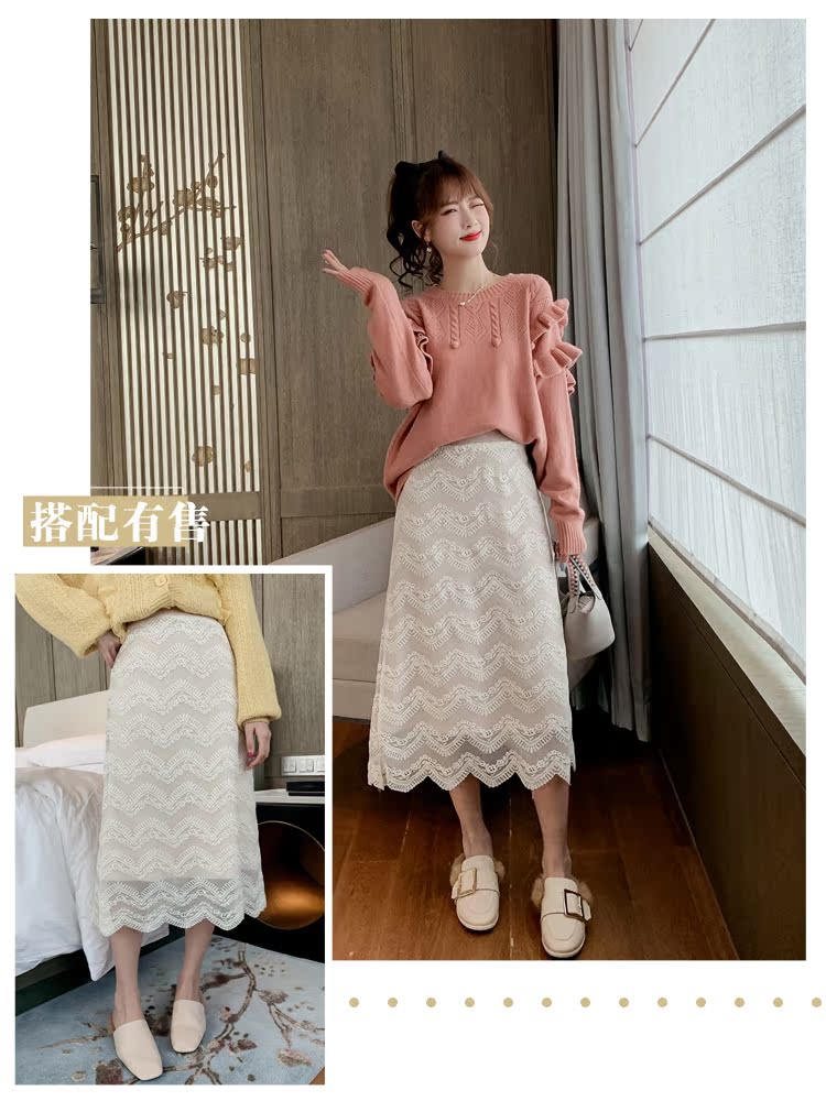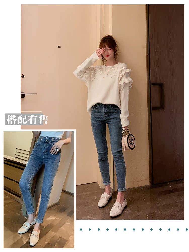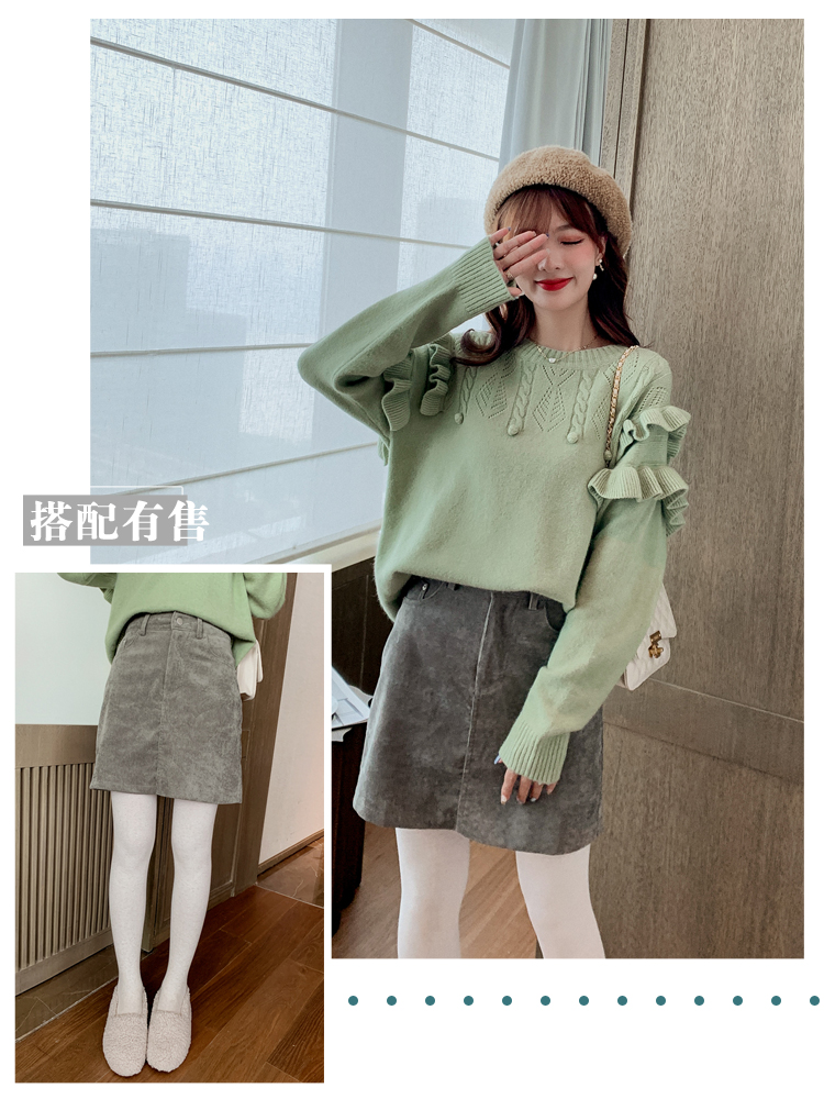 2019秋裝甜美輕熟風木耳荷葉邊毛衣女韓版寬松套頭針織衫上衣1入