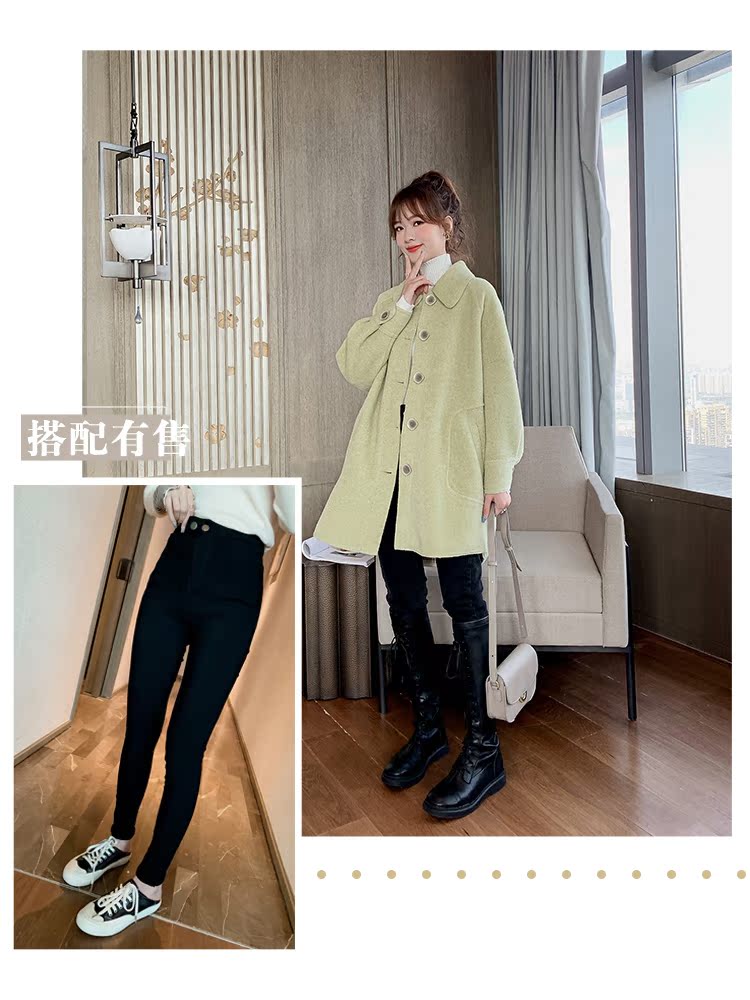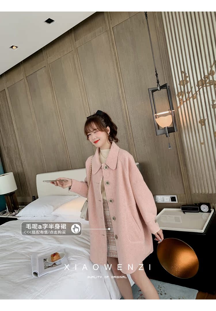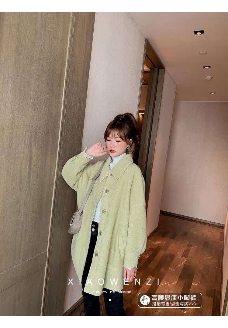 2019冬季皮毛一體大衣女中長款過膝韓版寬松顯瘦羊毛呢子外套1入