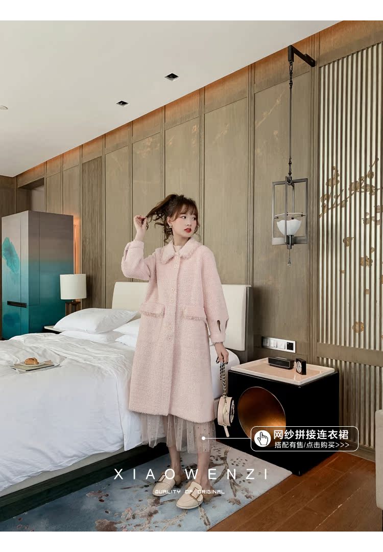 2019冬季韓版寬松皮毛一體外套女顯瘦百搭中長款過膝呢子大衣1入
