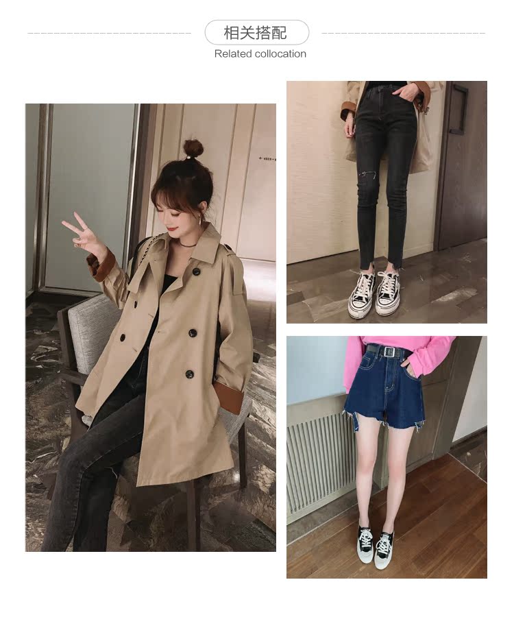 2019秋季韓版寬松雙排扣bf外套女中長款收腰顯瘦時尚百搭風衣1入