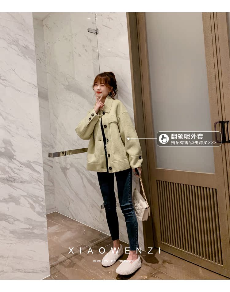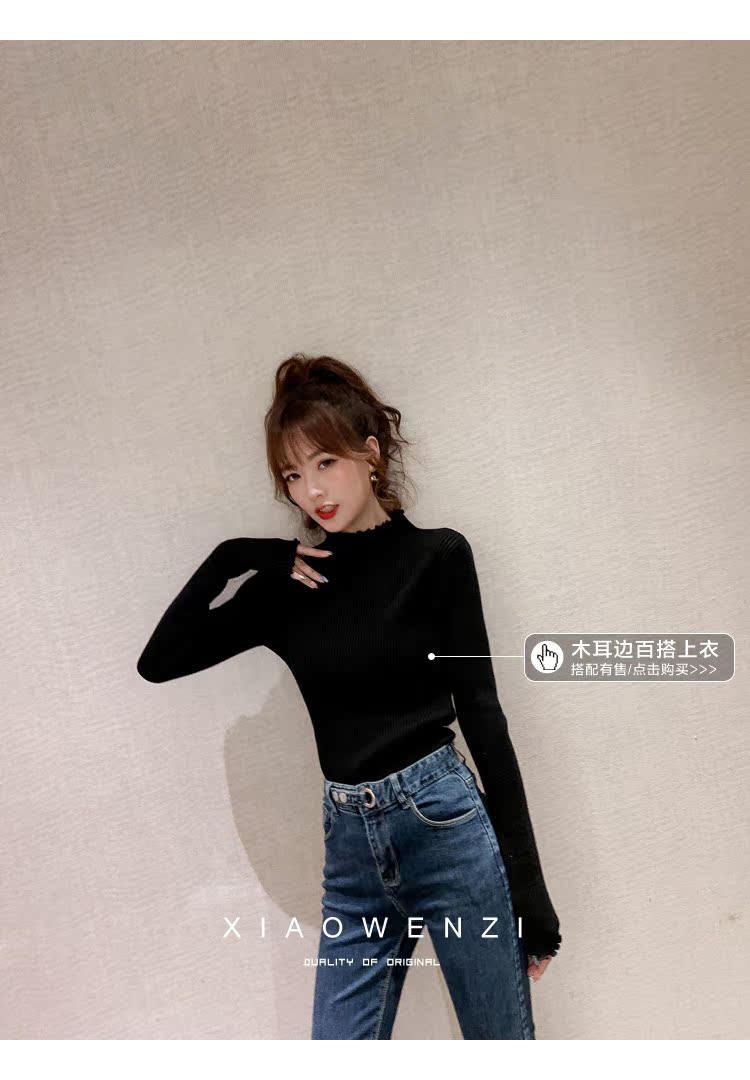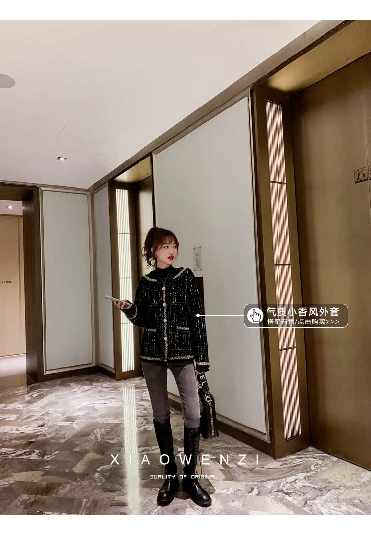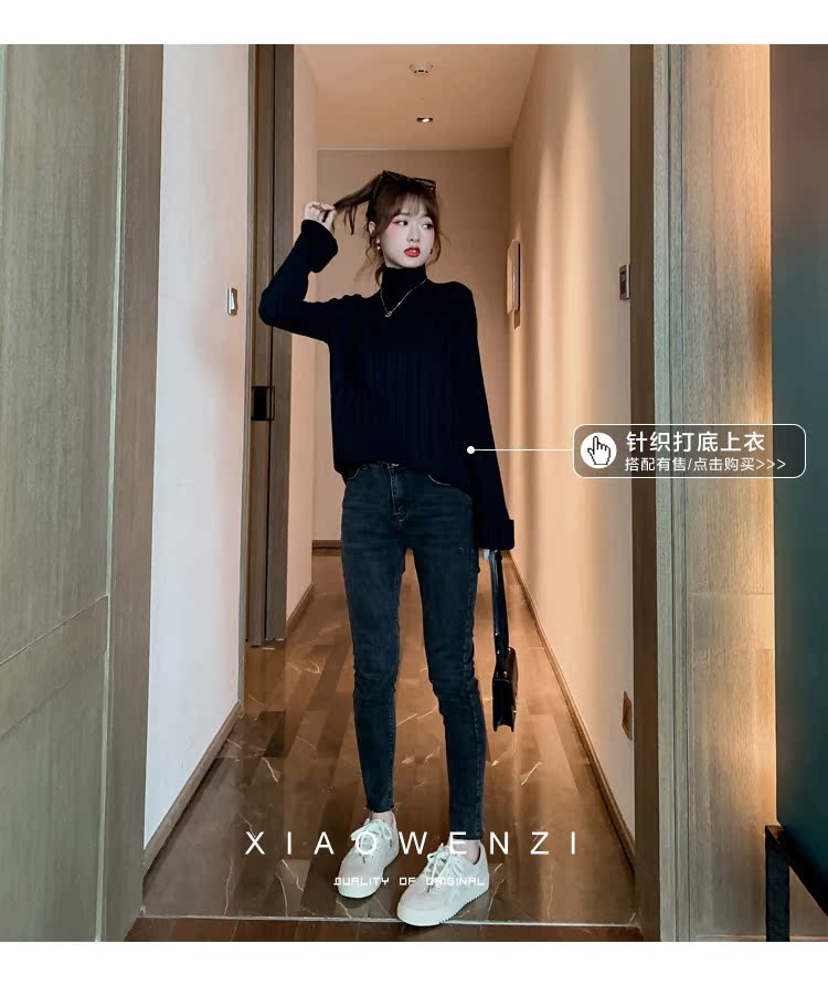 褲子女2019秋季小個子九分牛仔褲高腰修身顯瘦百搭鉛筆小腳褲1入