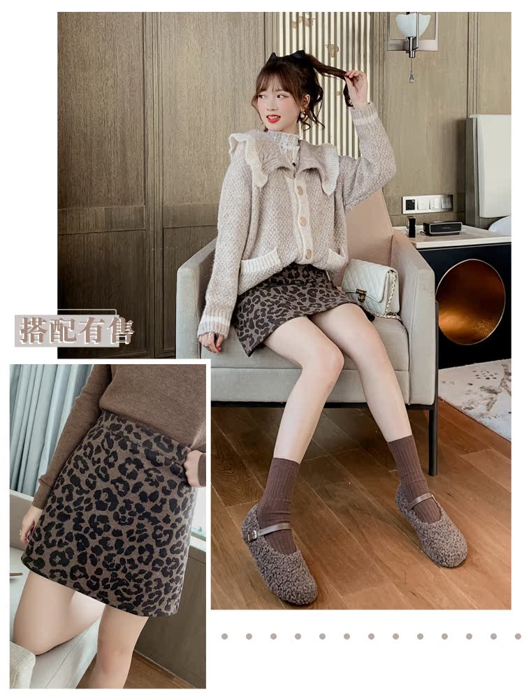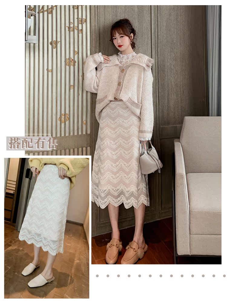 2019裝甜美荷葉邊娃娃領長袖外套上衣女寬松針織毛衣開衫1入