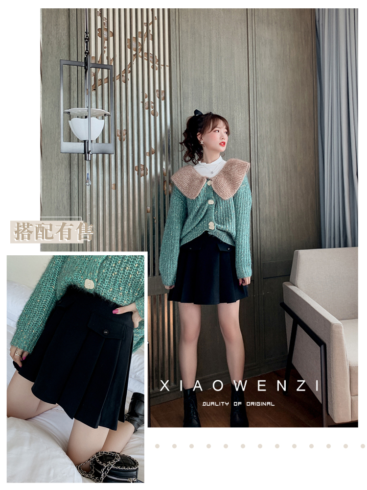 2019秋裝甜美撞色娃娃領上衣女慵懶休閑百搭毛衣外套針織開衫1入