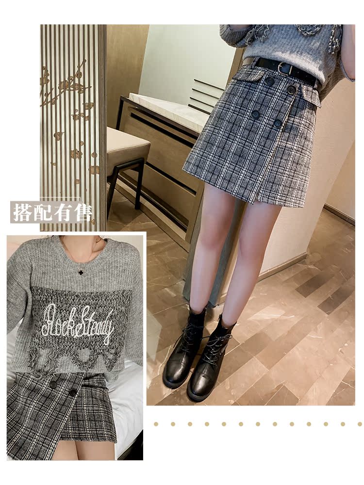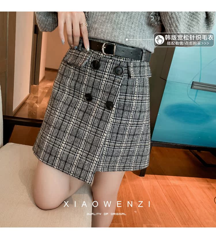 2019復古氣質格子裙高腰a字短裙女不規則毛呢包臀半身裙1入