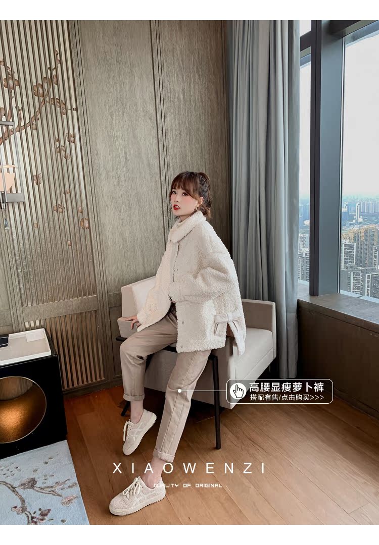 2019冬季皮毛一體羊羔毛外套女韓版寬松加厚百搭短款大衣夾克1入