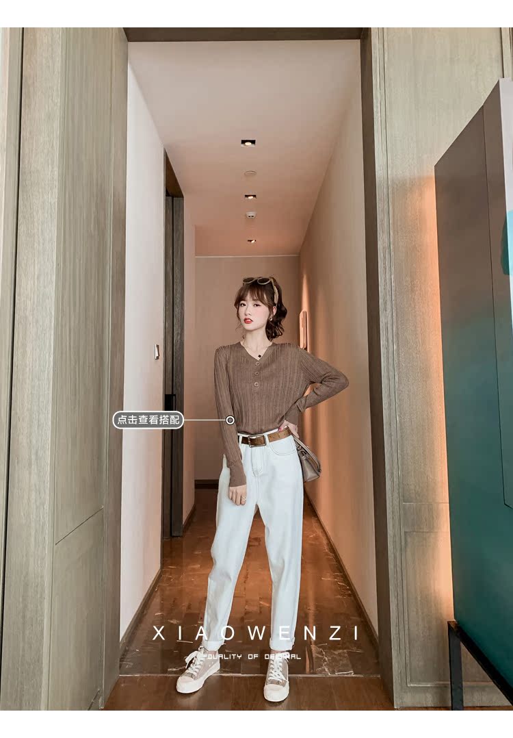 褲子女秋裝2019韓版百搭高腰顯瘦哈倫蘿卜九分休閑褲送腰帶潮1入