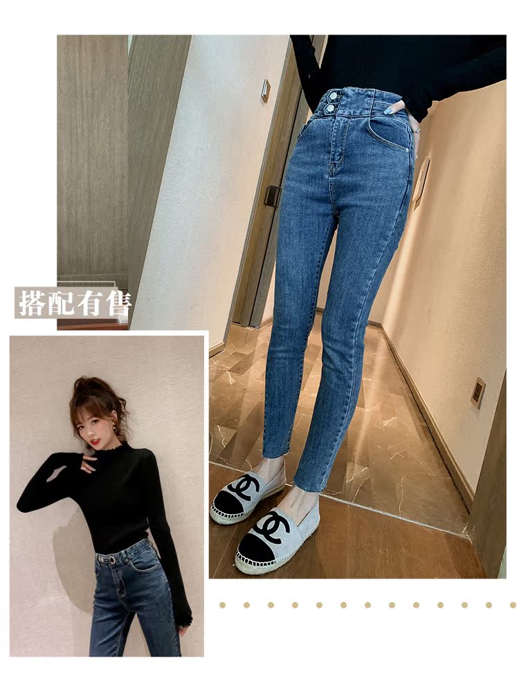 2019小個子高腰九分褲修身顯瘦鉛筆小腳褲子百搭牛仔褲女1入