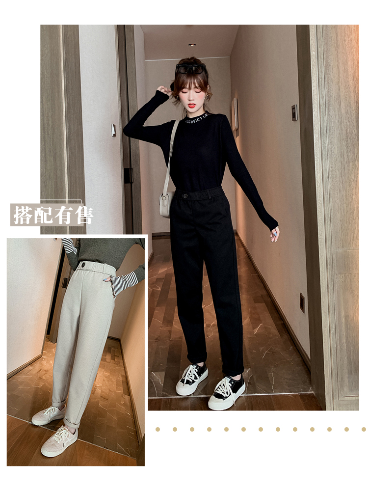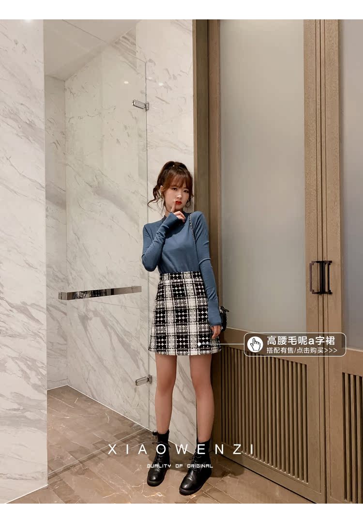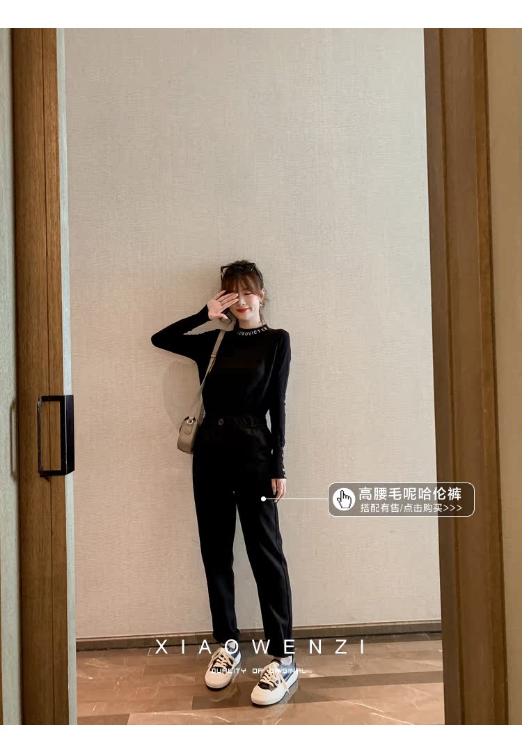 2019韓版休閑字母印花長袖上衣女半高領修身百搭打底衫潮1入