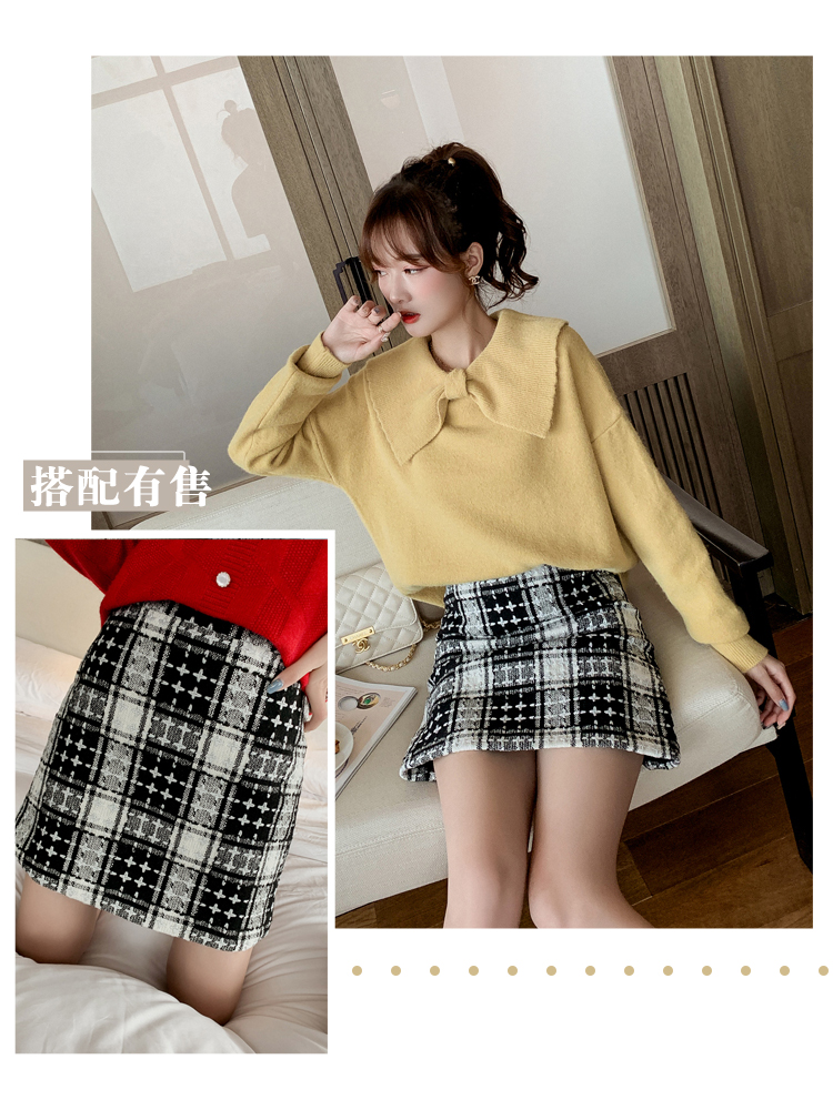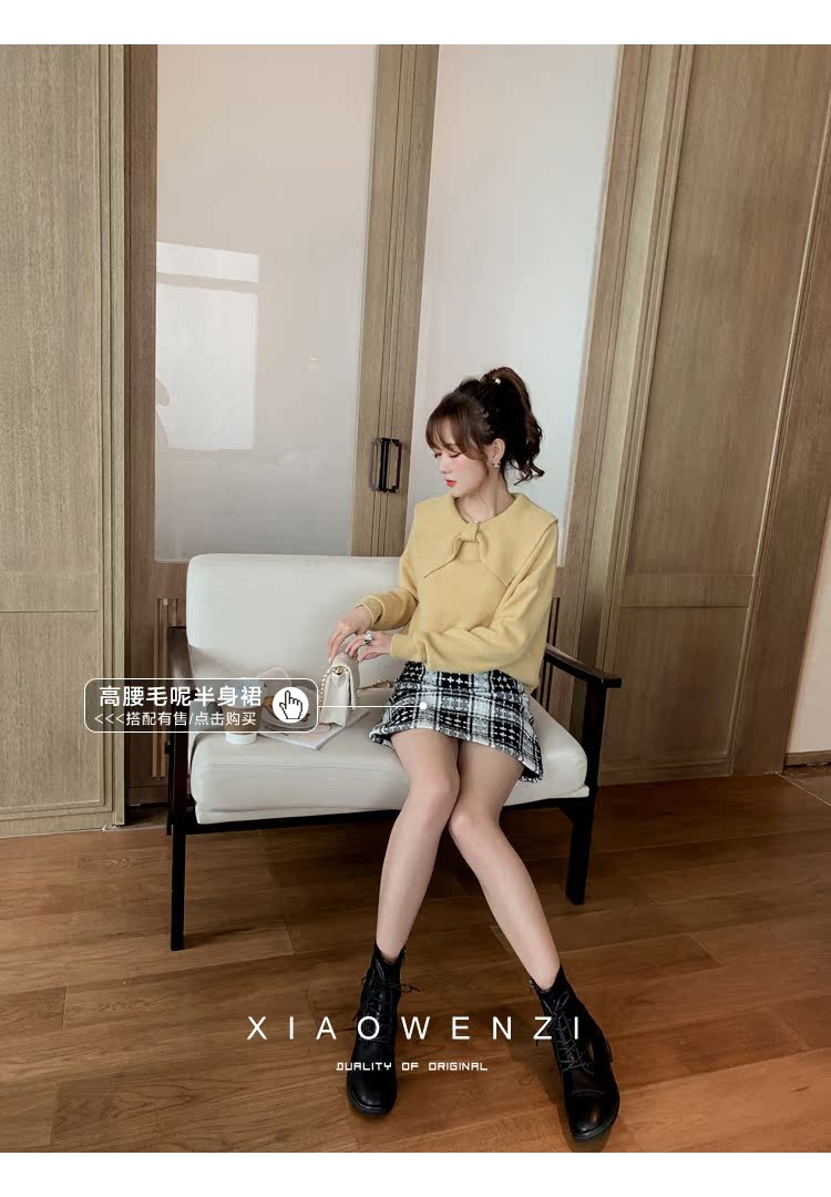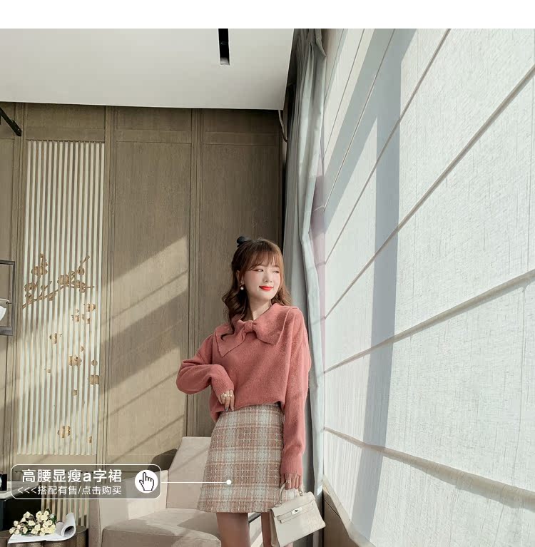 2019韓版蝴蝶結娃娃領長袖上衣女寬松百搭套頭毛衣針織衫1入