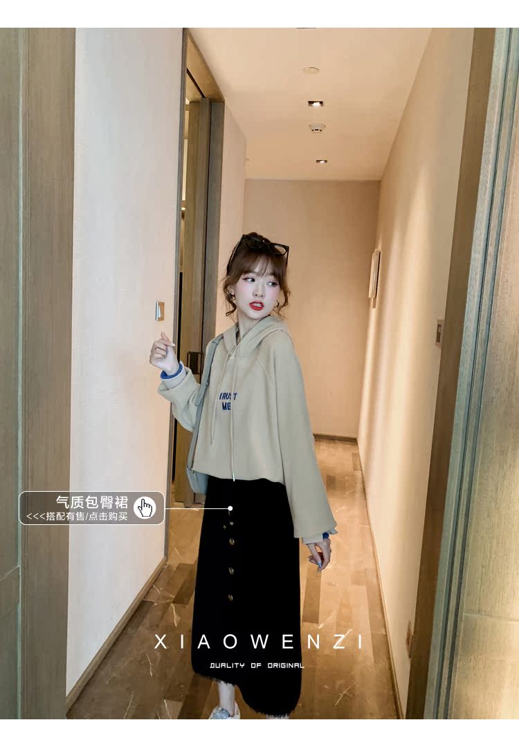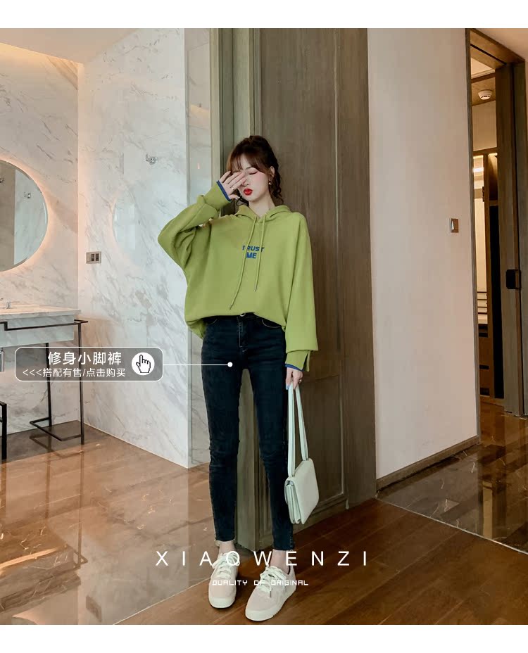 2019秋裝字母刺繡加絨連帽套頭衛衣衫女韓版寬松百搭外套上衣1入