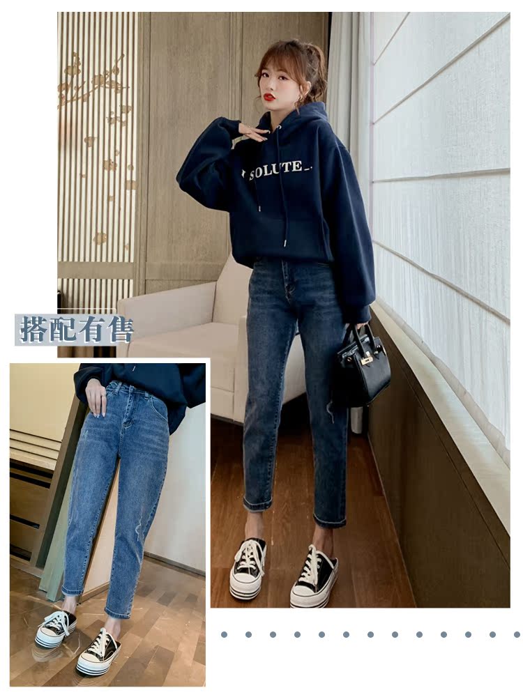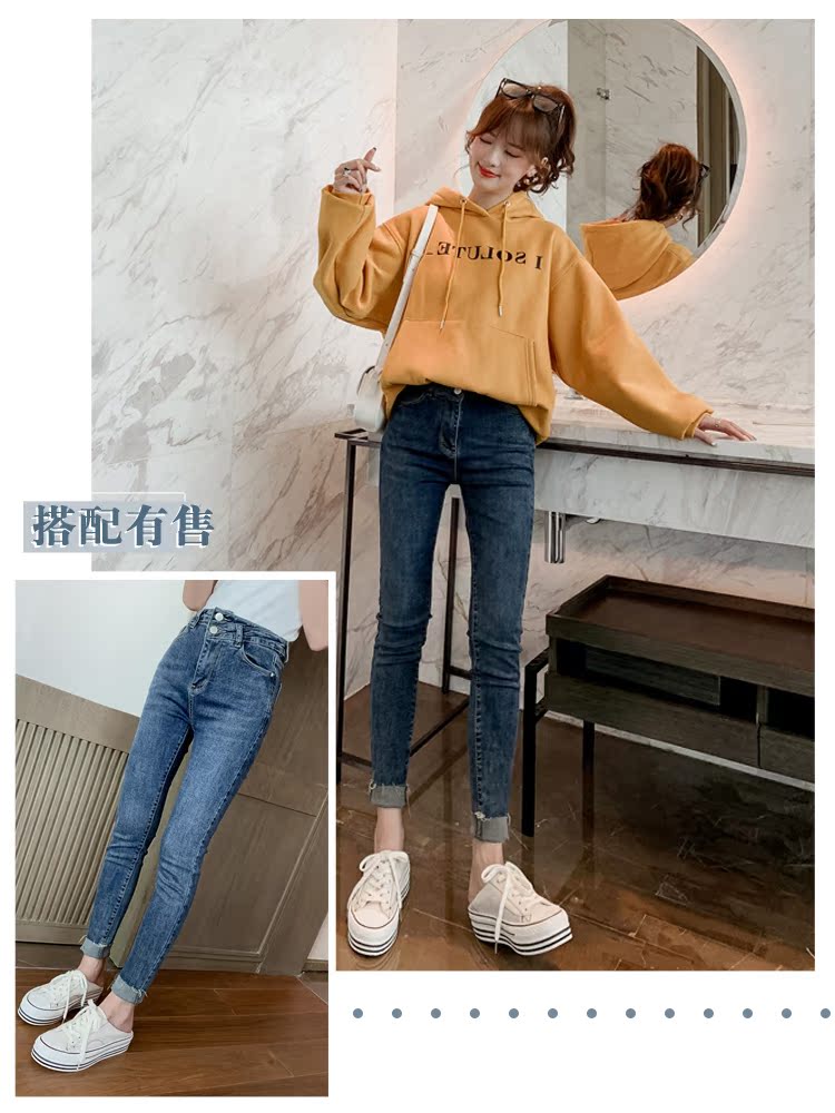 2019秋裝韓版寬松休閑連帽套頭衛衣女顯瘦百搭字母印花上衣潮1入