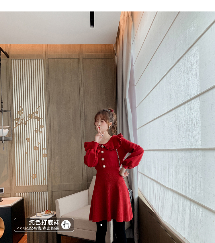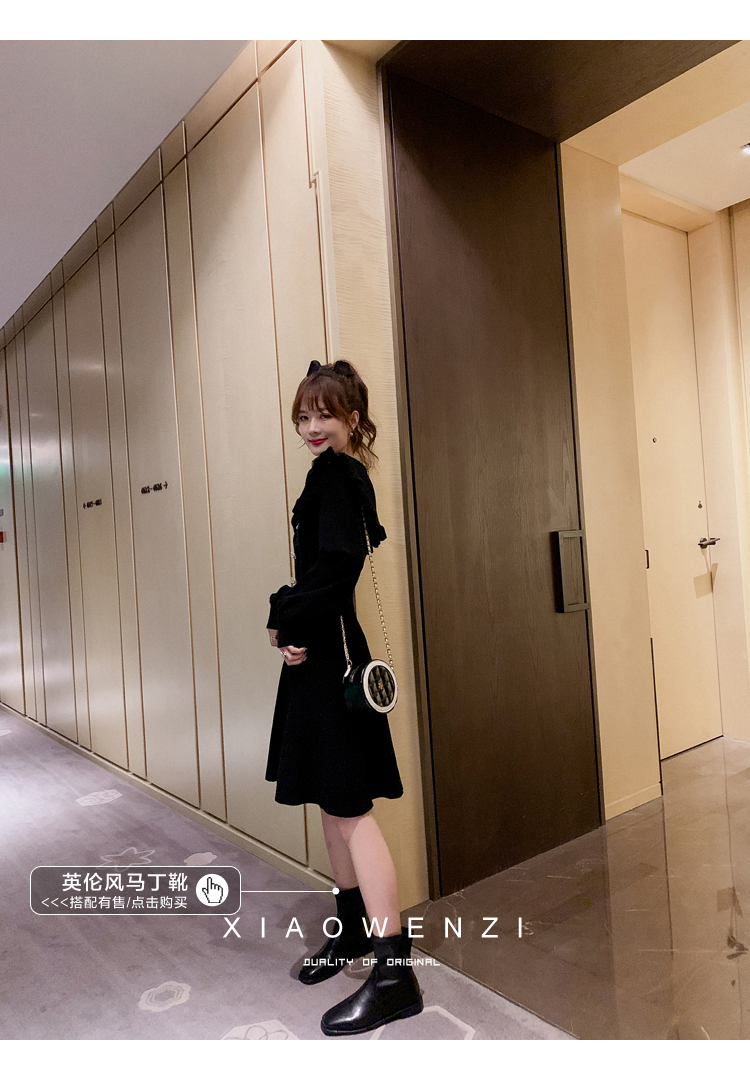 裙子女2019秋裝法式復古娃娃領針織連衣裙收腰顯瘦氣質a字裙1入