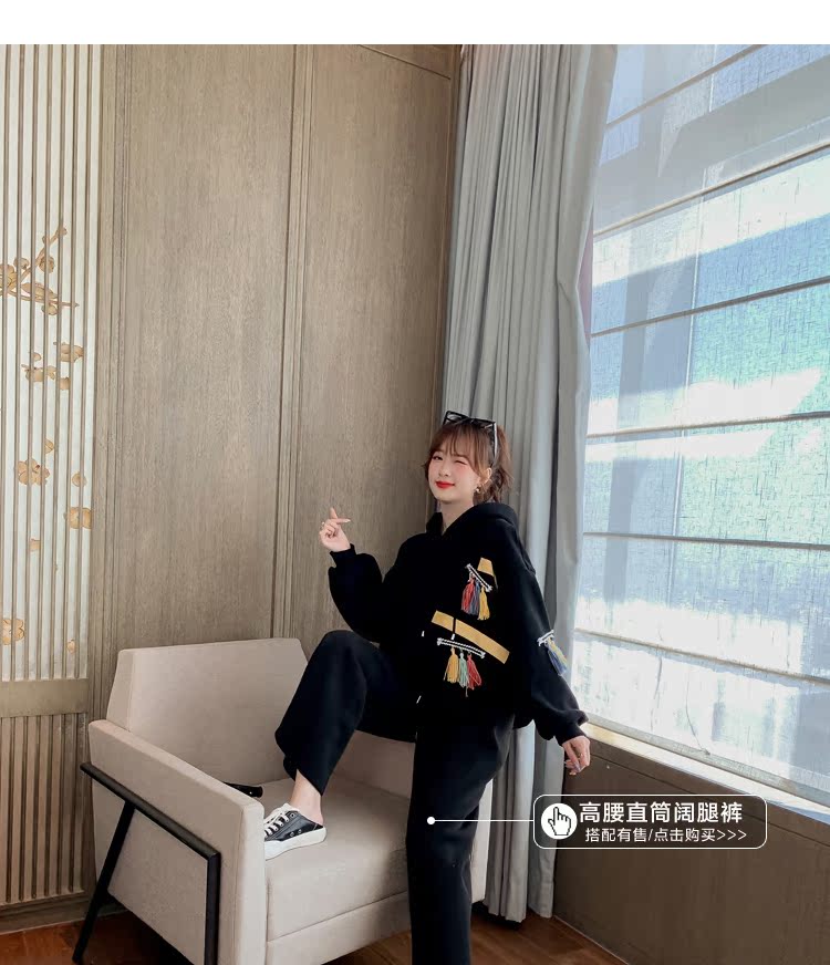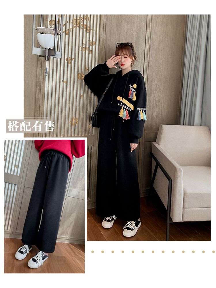 2019設計感復古民族風流蘇上衣女韓版寬松套頭連帽衛衣衫1入