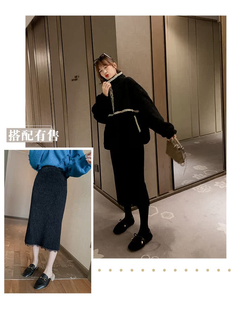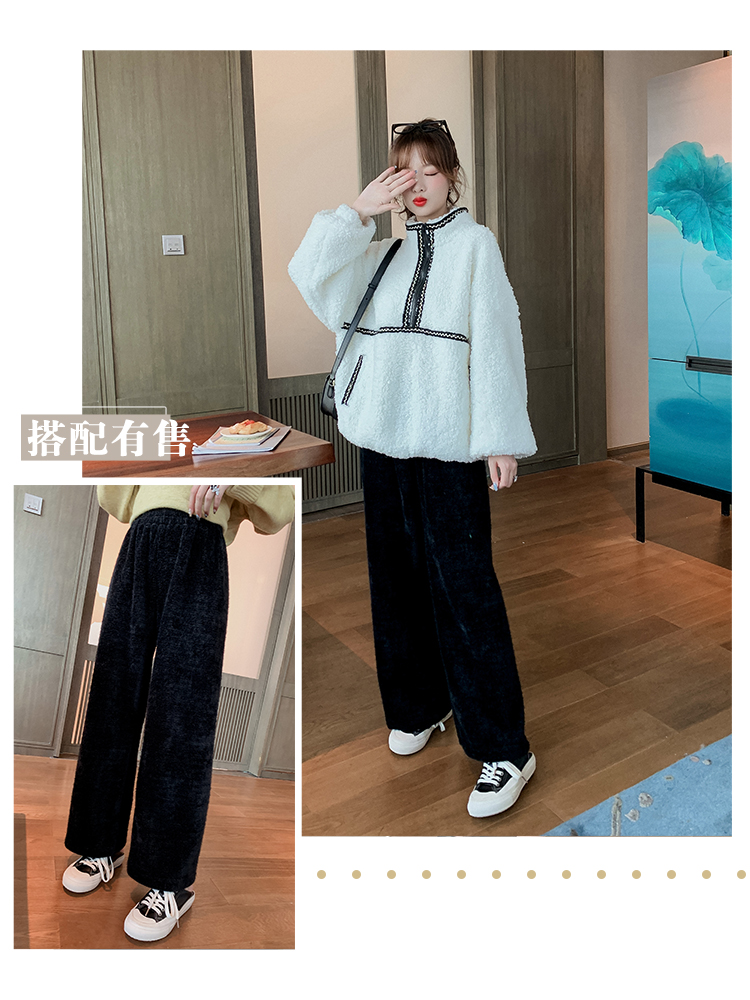 2019女韓版寬松羊羔毛套頭衛衣立領拉鏈慵懶外套長袖上衣1入