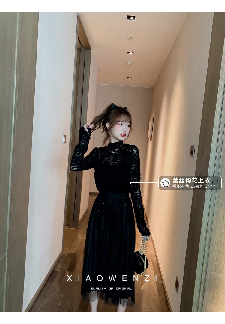 裙子女2019秋裝很仙的氣質高腰網紗半身裙百搭中長款百褶裙潮1入