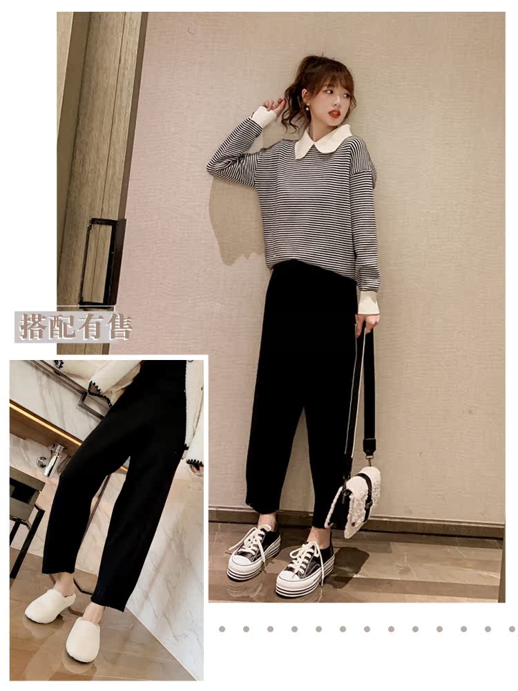 2019秋裝韓版顯瘦娃娃領條紋撞色長袖上衣時尚百搭打底針織衫1入