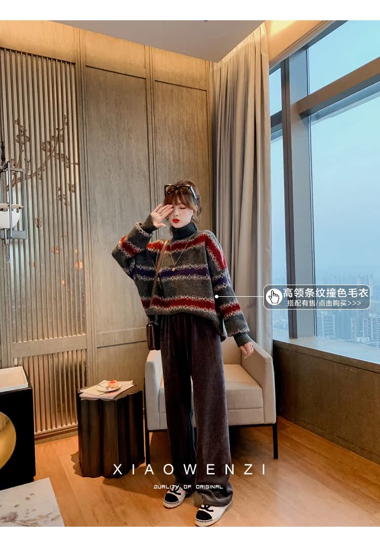 2019女韓版寬松闊腿褲顯瘦百搭高腰休閑褲垂感長直筒褲子1入
