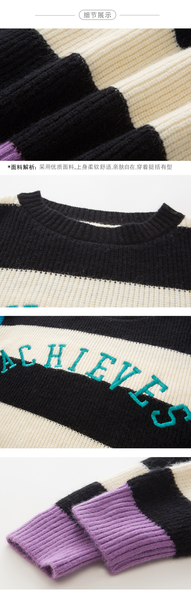 韓版寬松撞色衛衣女秋裝2019時尚百搭條紋字母印花針織衫上衣1入