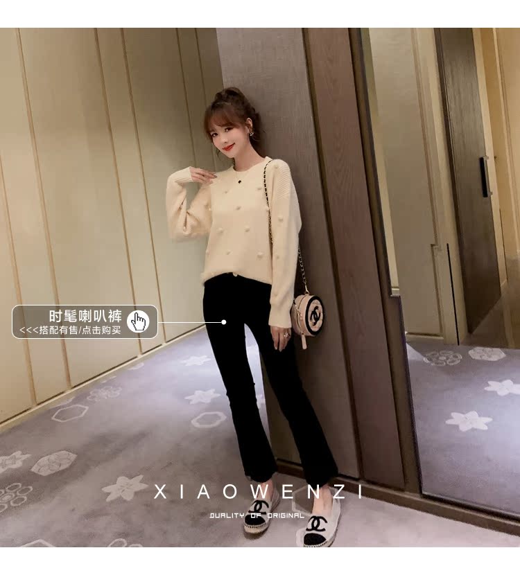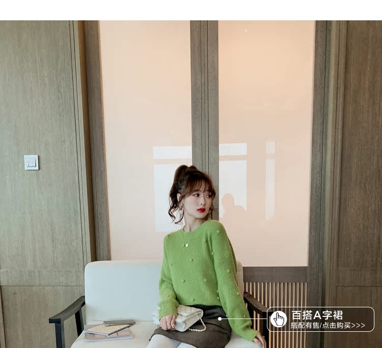 2019秋裝慵懶休閑長袖針織上衣女顯瘦百搭打底衫寬松套頭毛衣1入