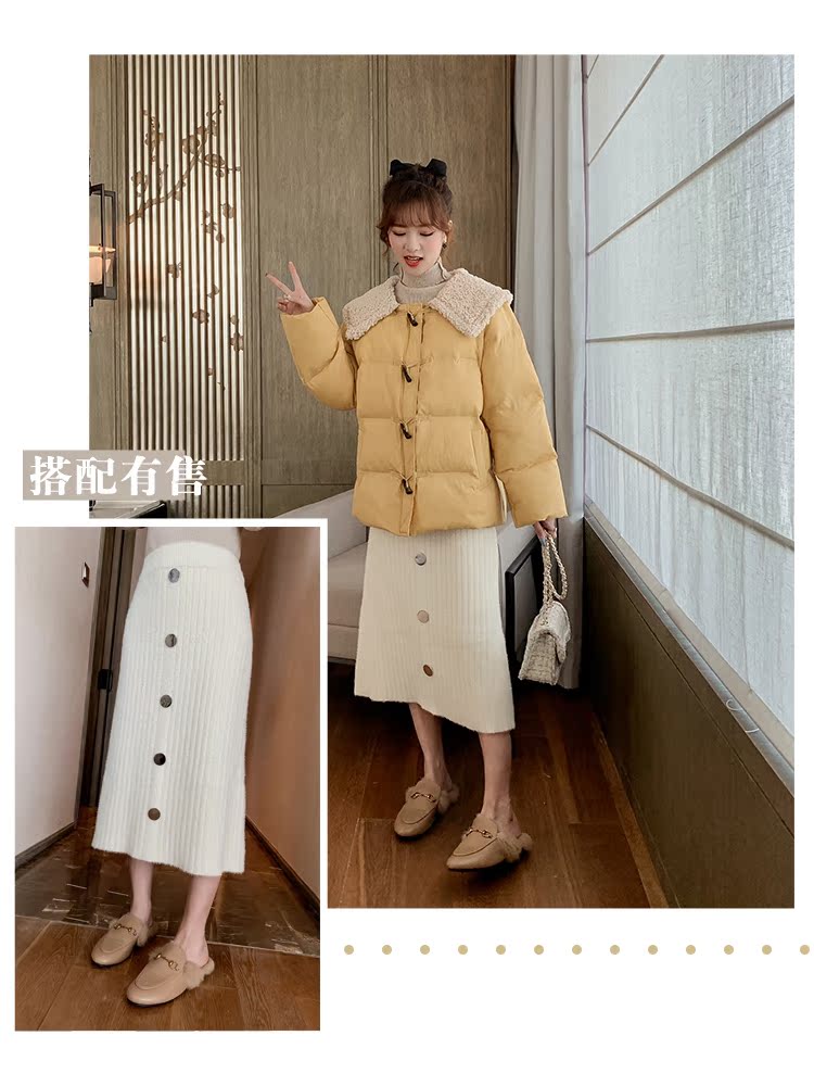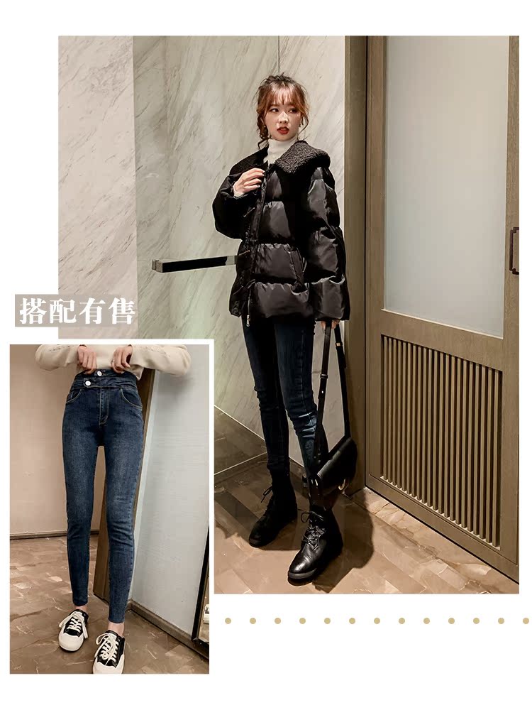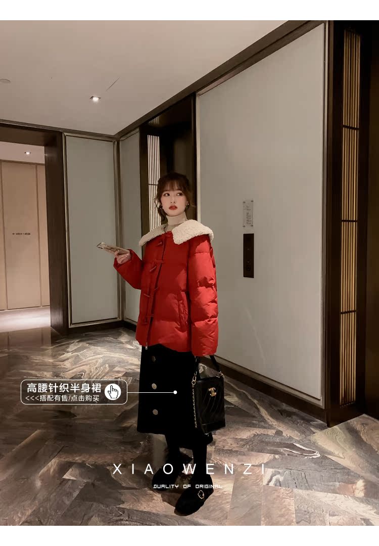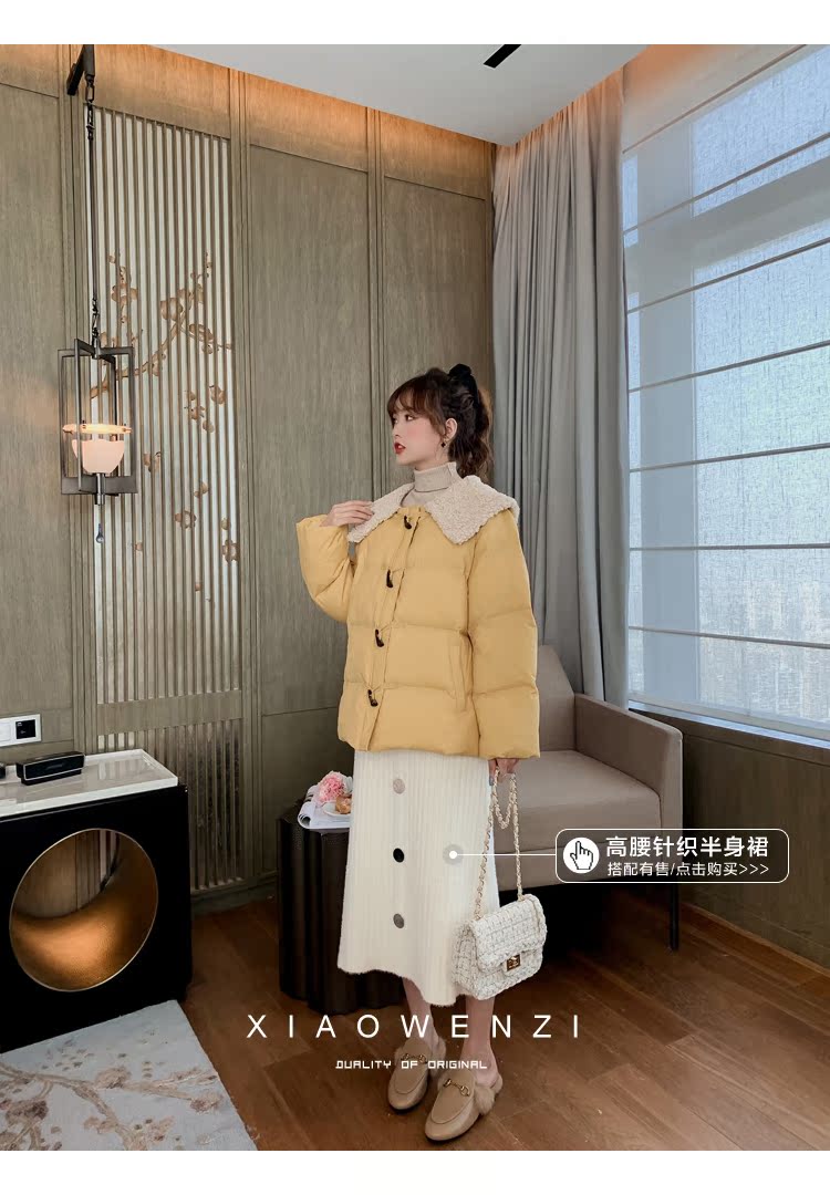 2019冬季潮羊羔毛翻領羽絨服女短款韓版寬松外套棉服休閑上衣1入