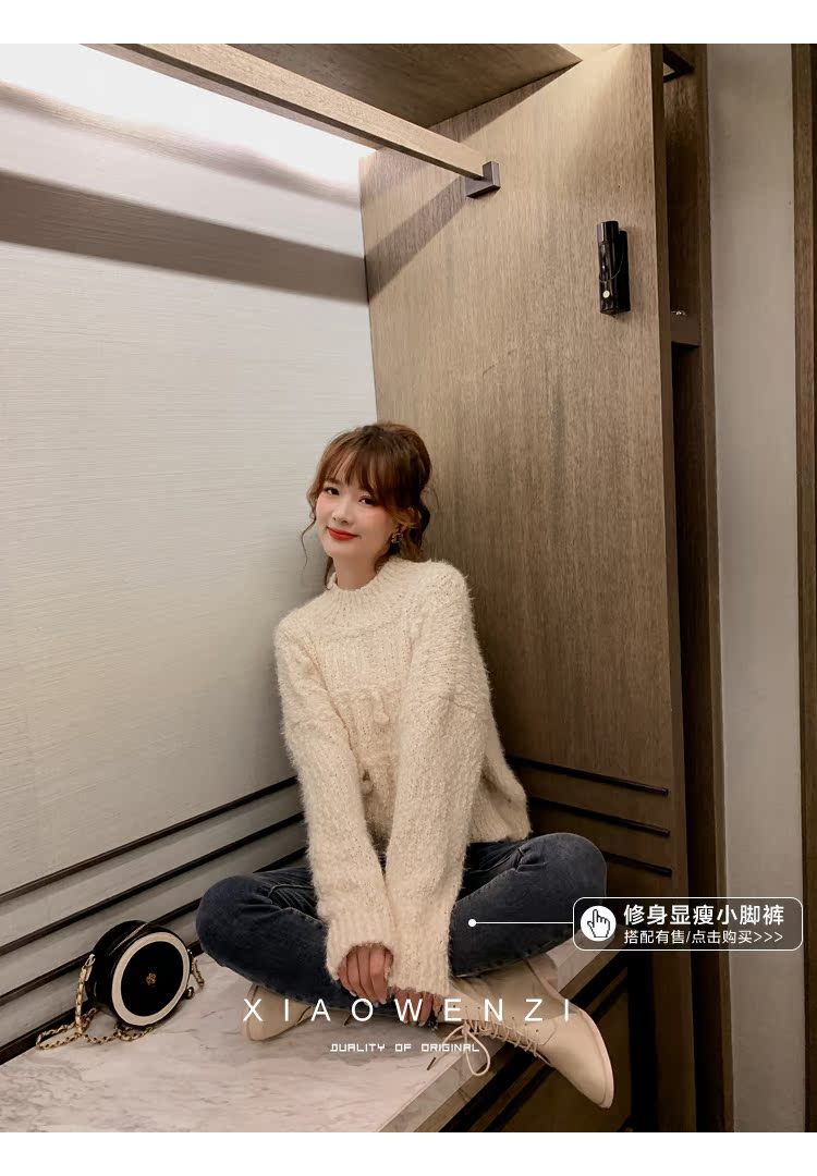 2019女韓版寬松套頭毛衣顯瘦慵懶針織衫洋氣百搭長袖上衣1入