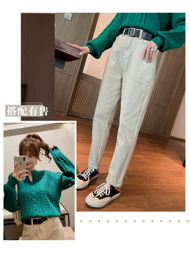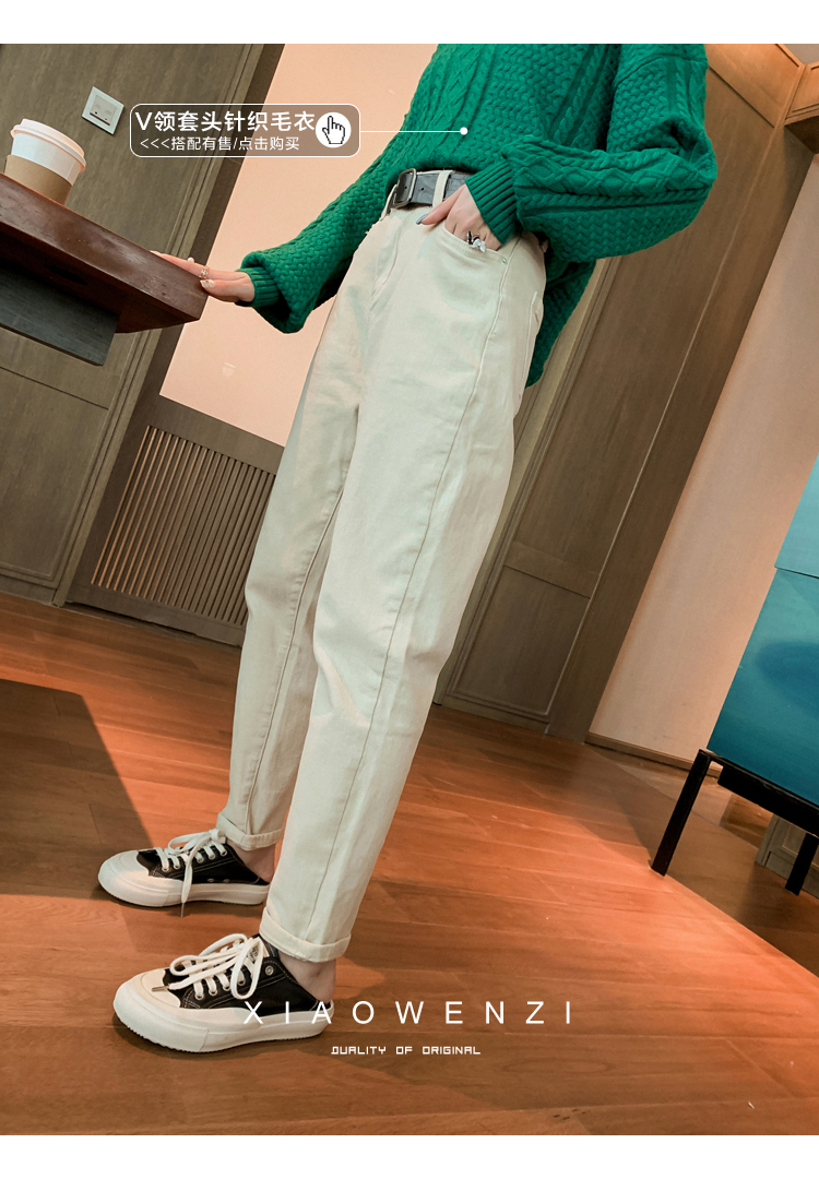 2019韓版寬松加絨九分休閑褲子女高腰顯瘦百搭蘿卜哈倫褲1入