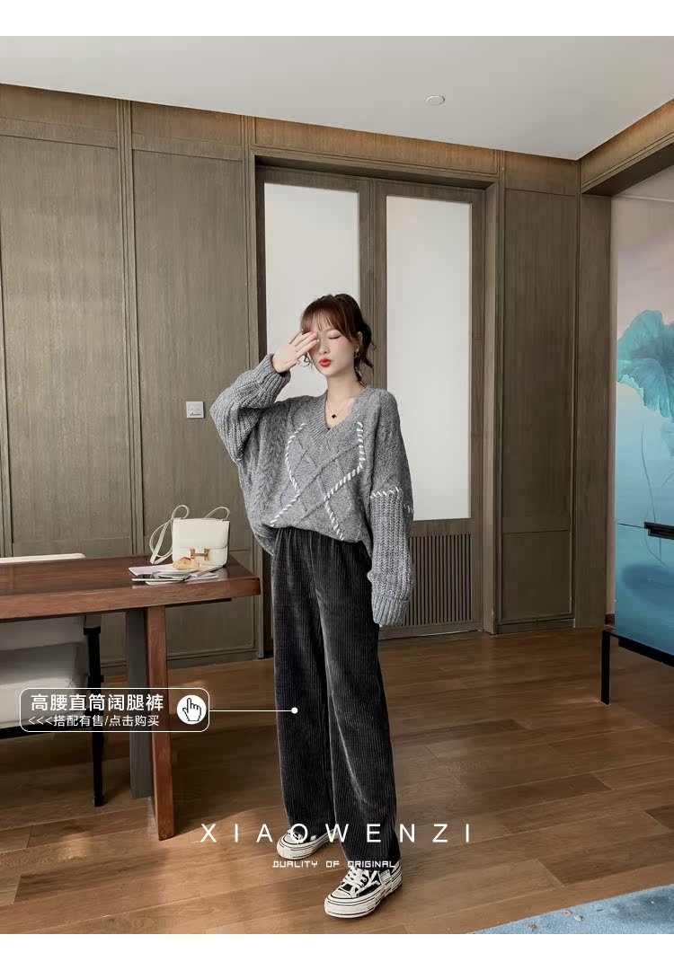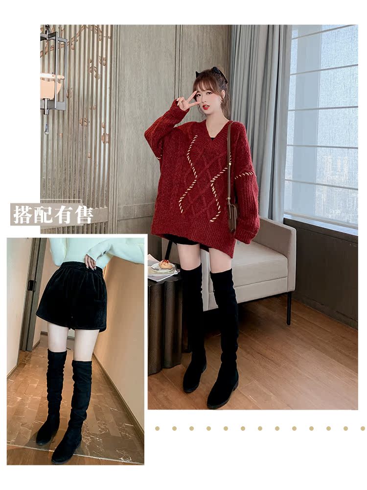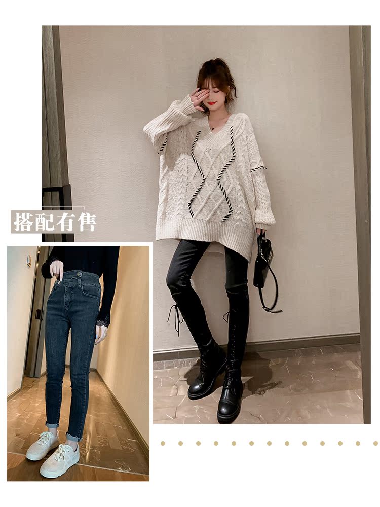 2019女中長款v領套頭針織衫毛衣慵懶寬松羊絨衫長袖上衣1入