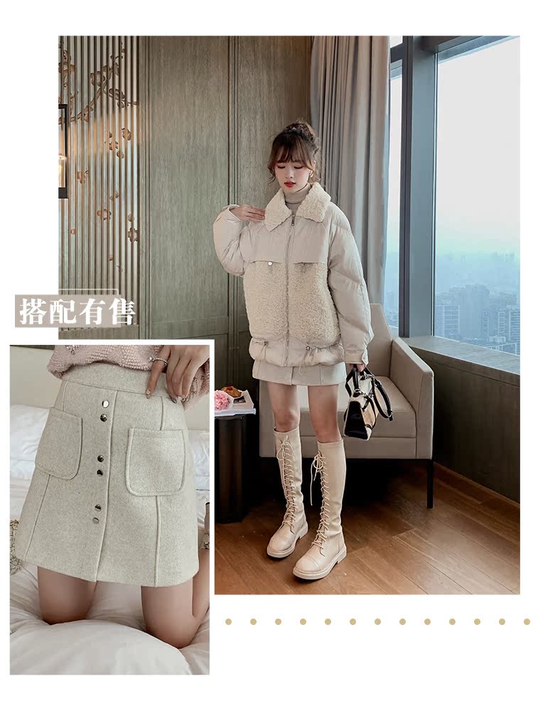 2019冬季羊羔毛拼接羽絨棉服女韓版寬松短款加厚棉襖外套上衣1入