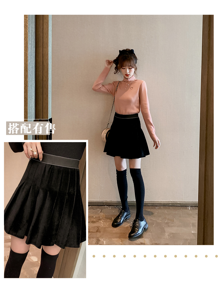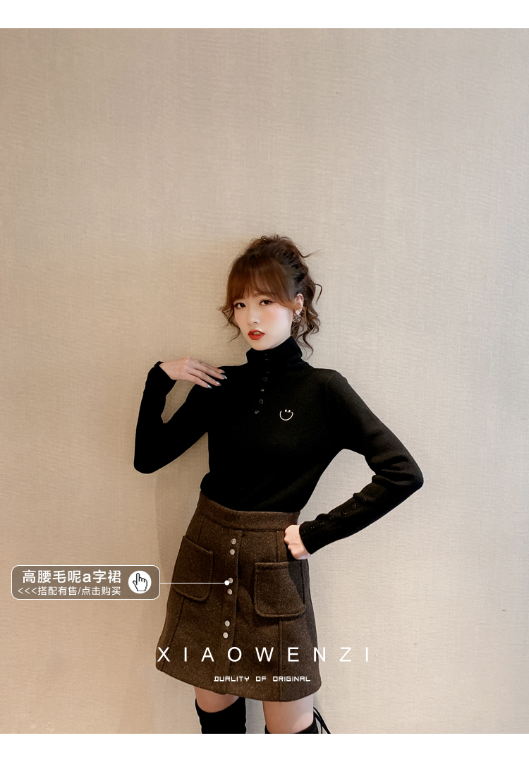 2019女半高領修身打底衫韓版時尚針織衫休閑百搭長袖上衣1入