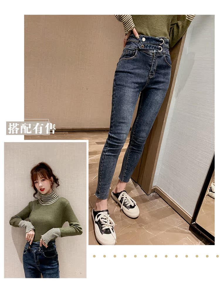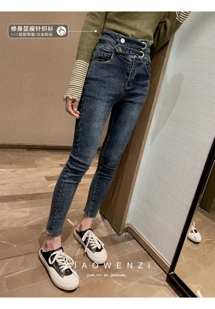 2019高腰修身顯瘦九分鉛筆褲女時尚百搭牛仔褲彈力小腳褲1入