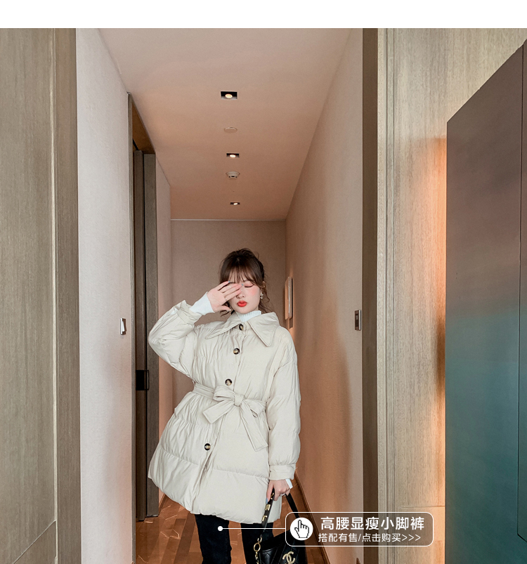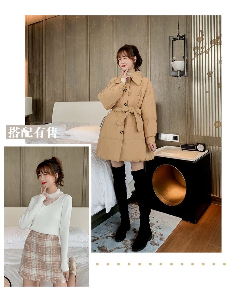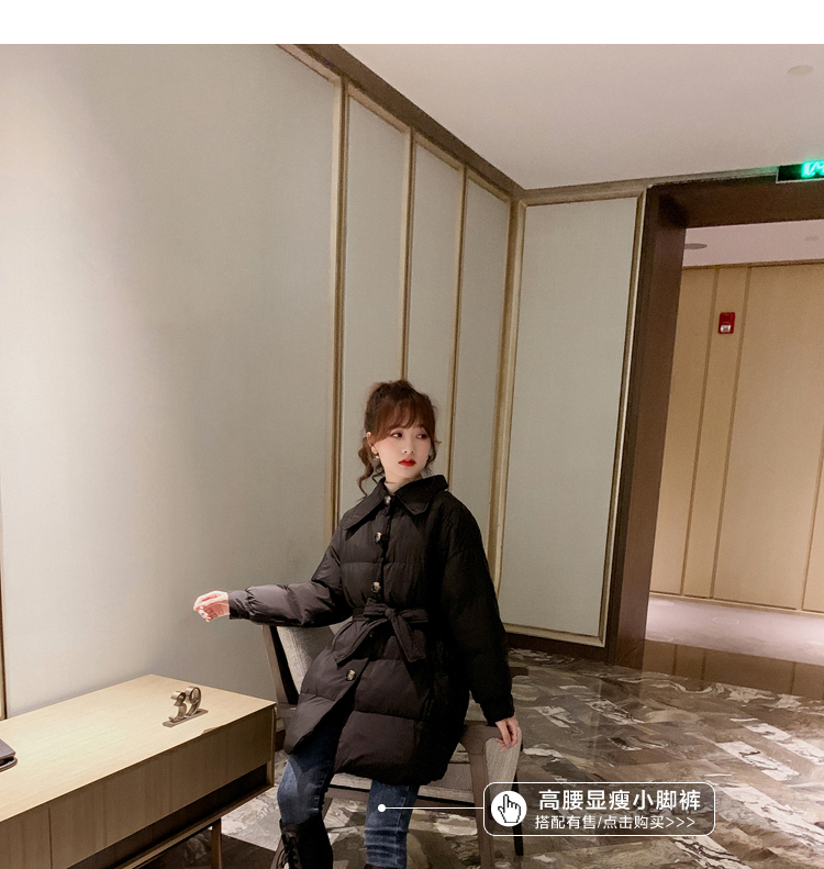 2019冬季韓版寬松羽絨服女中長款面包棉襖收腰顯瘦外套上衣潮1入