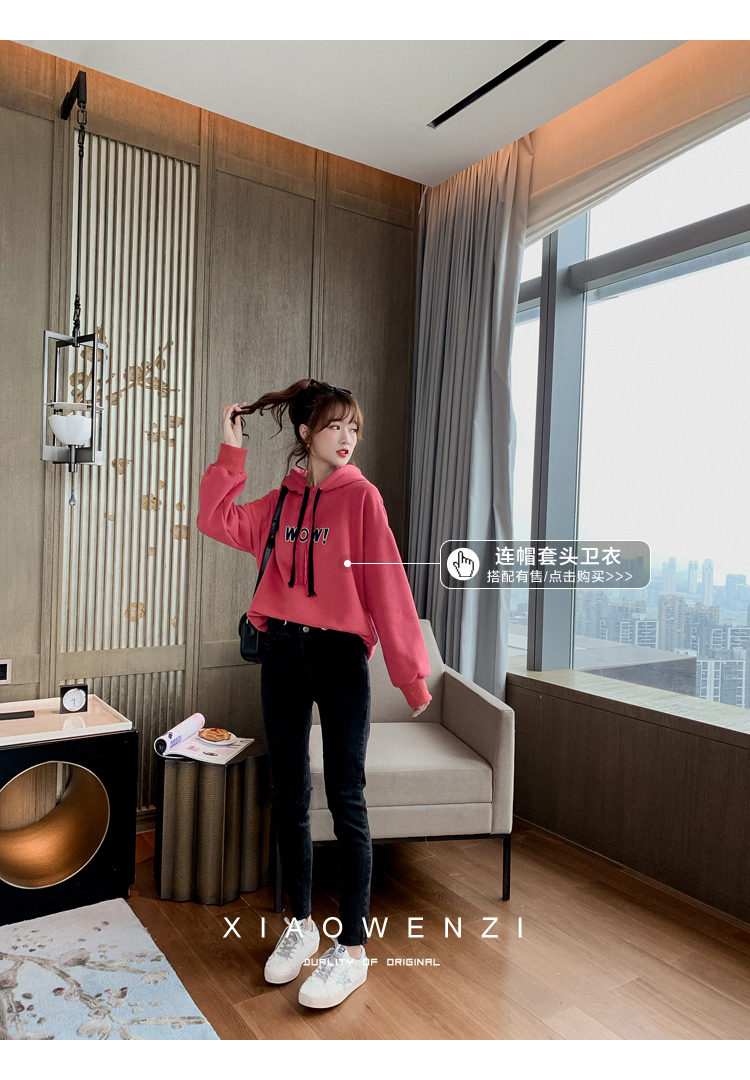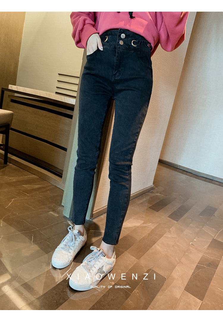 2019時尚百搭彈力小腳褲子女修身顯瘦高腰九分鉛筆牛仔褲1入