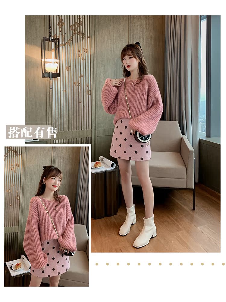 2019潮氣質包臀a字裙百搭波點一步裙子高腰毛呢半身裙潮1入