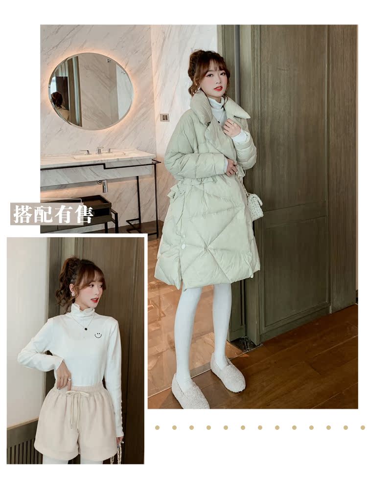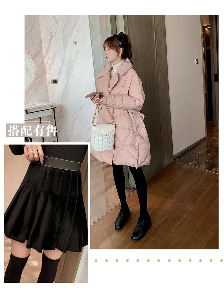 2019冬季潮韓版寬松面包服中長款西裝領收腰羽絨服女棉衣外套1入
