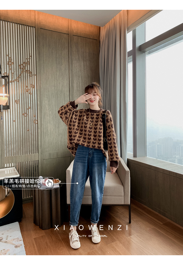 韓版寬松愛心圓領毛衣2019女慵懶風上衣外穿針織打底衫潮1入