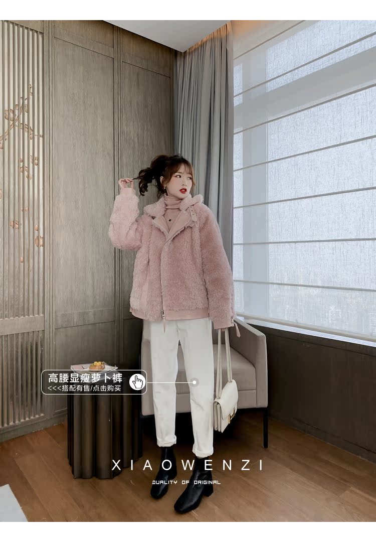 2019冬季女韓版寬松立領拉鏈羊羔毛外套顯瘦百搭加厚長袖上衣1入