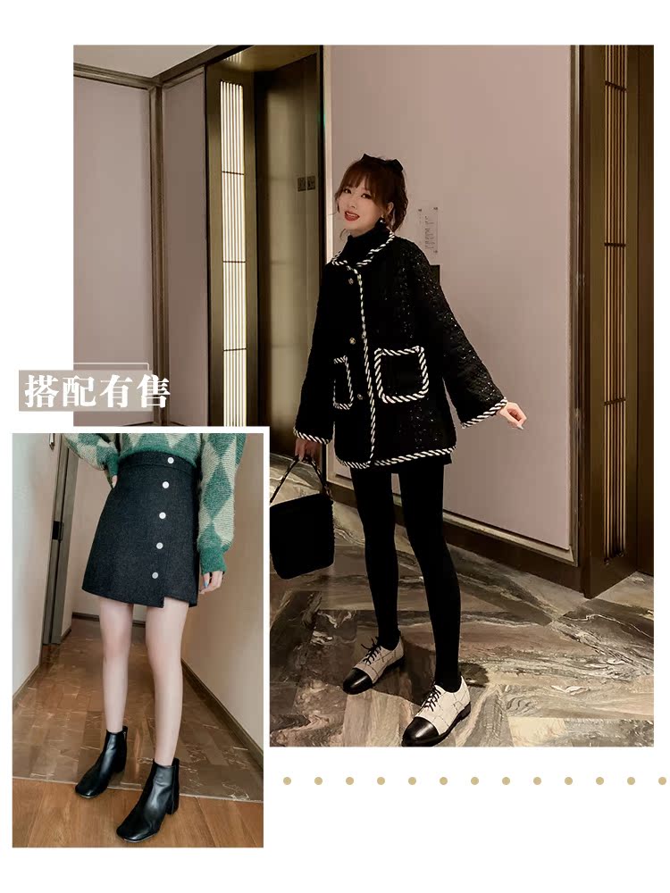 2019冬季氣質小香風粗花呢女外套韓版寬松上衣百搭中長款大衣1入