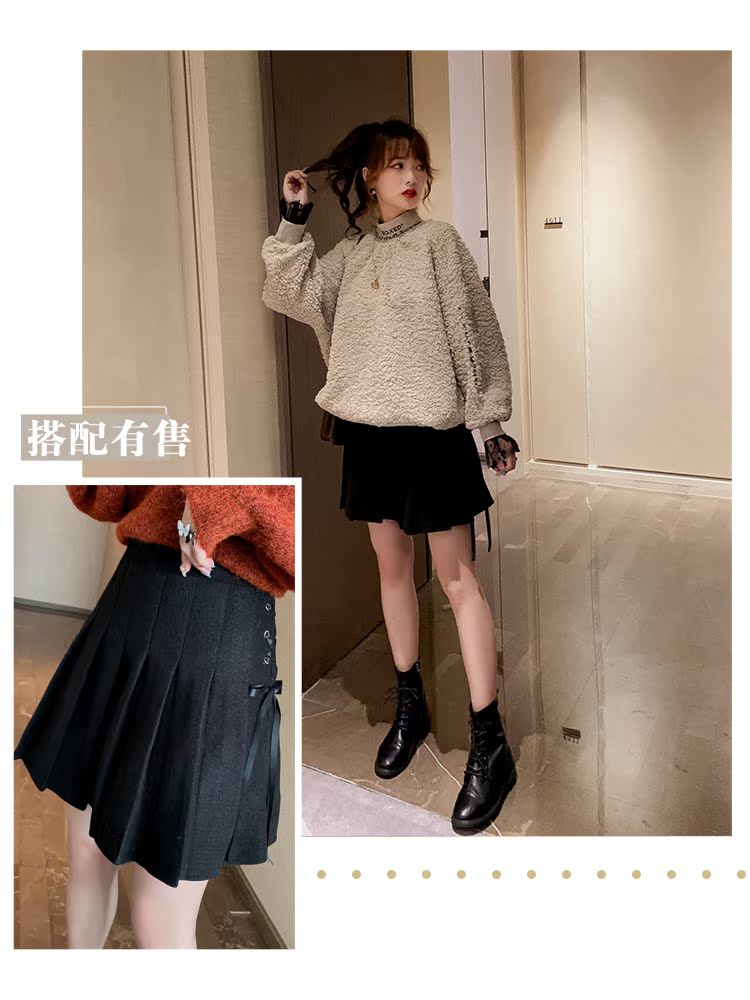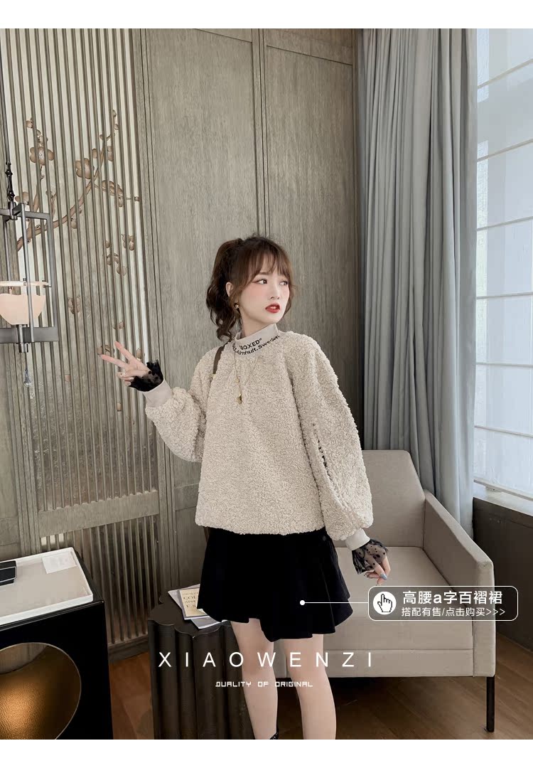 2019女半高領羊羔毛衛衣韓版寬松慵懶套頭假兩件長袖上衣1入