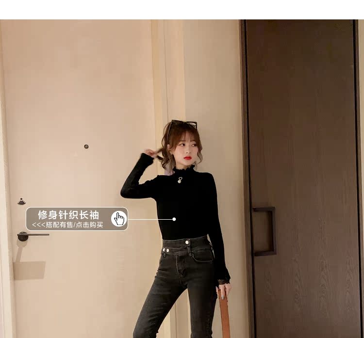 2019女修身彈力小腳褲高腰毛邊九分牛仔褲時尚百搭鉛筆褲1入