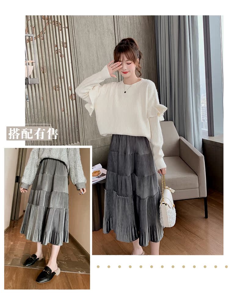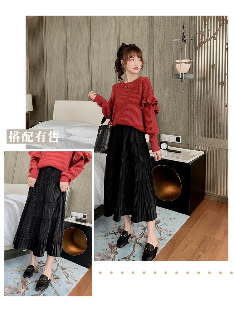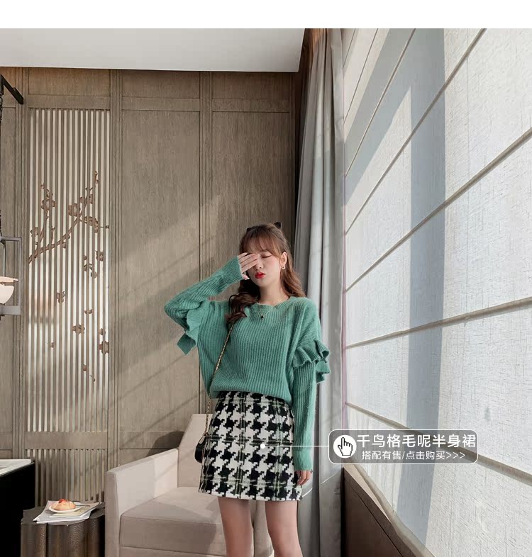 2019女甜美氣質荷葉邊針織衫上衣韓版寬松慵懶風長袖毛衣1入